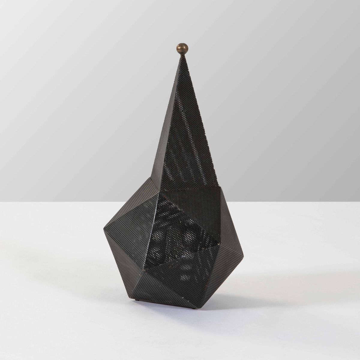 Lampada da tavolo mod. Baghdad in metallo forato e laccato, particolare in ottone.