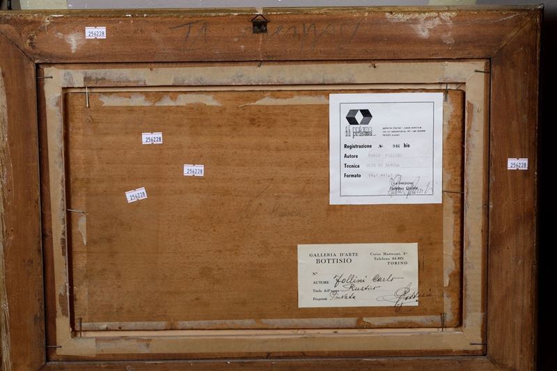 Al retro etichetta cartacee della Galleria d'arte Bottisio, Torino ed etichetta cartacea della Galleria d'arte Il Prisma, Cuneo