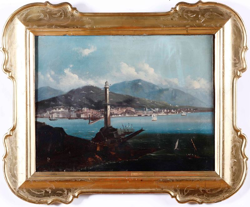 Pittore del XIX-XX secolo Coppia di vedute di Genova