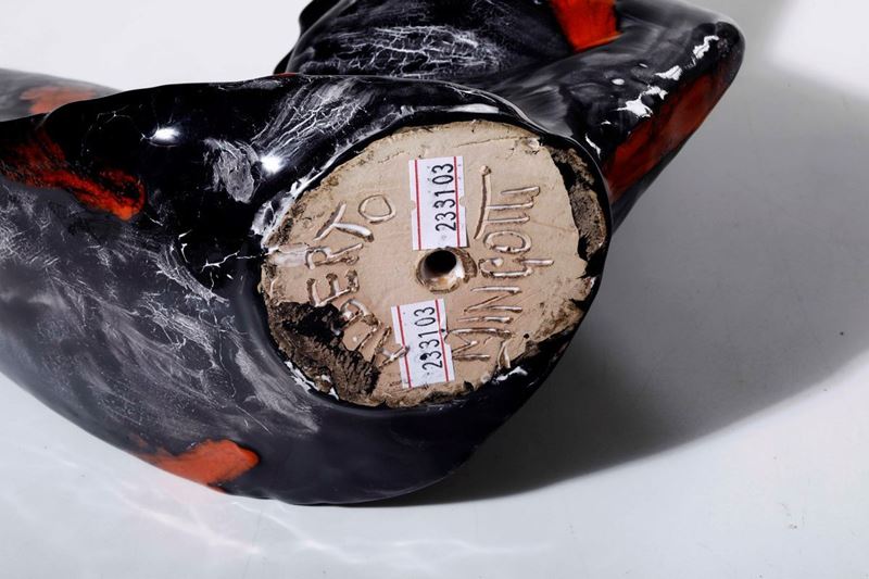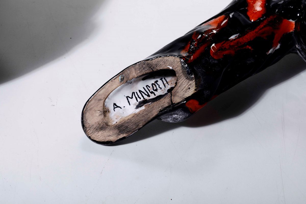Coppia di personaggi maschile e femminile in movimento, maiolica policroma.