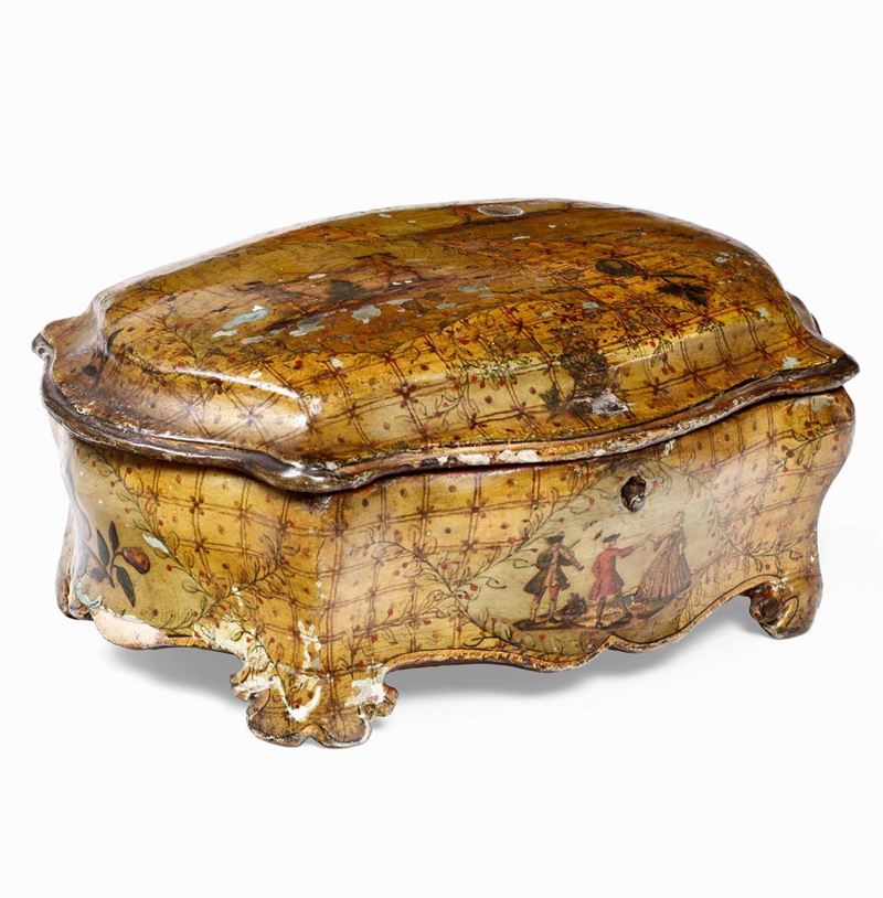 Cofanetto Legno dipinto, laccato, carta sagomata e colorata Arte veneziana del XVIII secolo