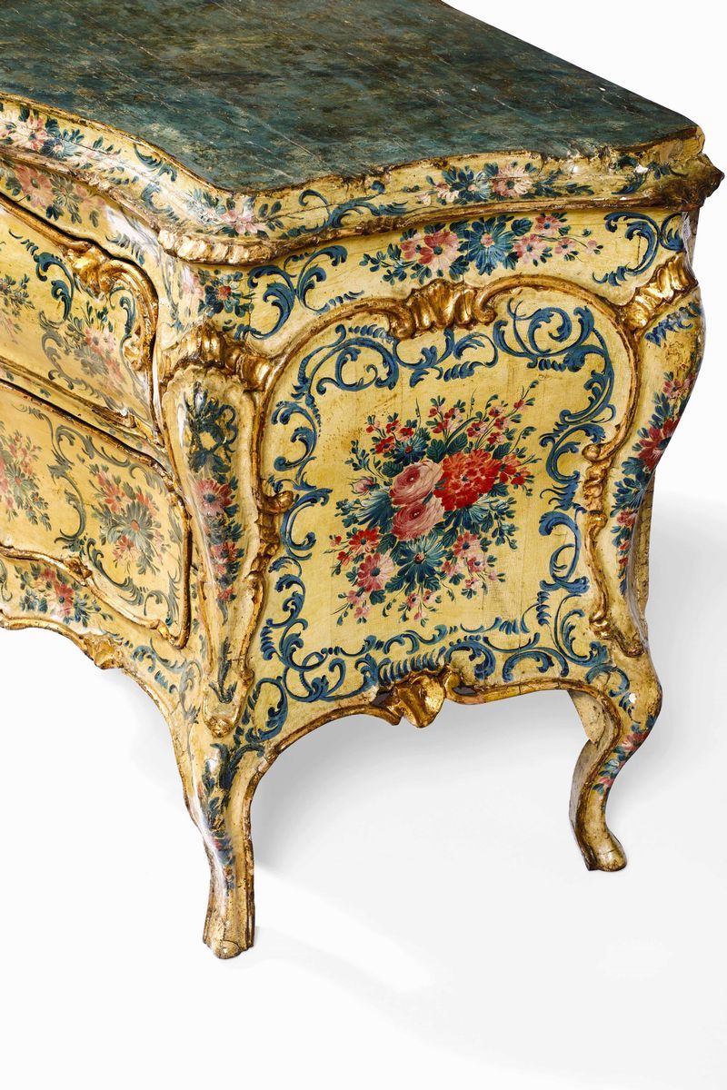 Commode rococò in legno laccato con lumeggiature in oro, Venezia seconda metà XVIII secolo