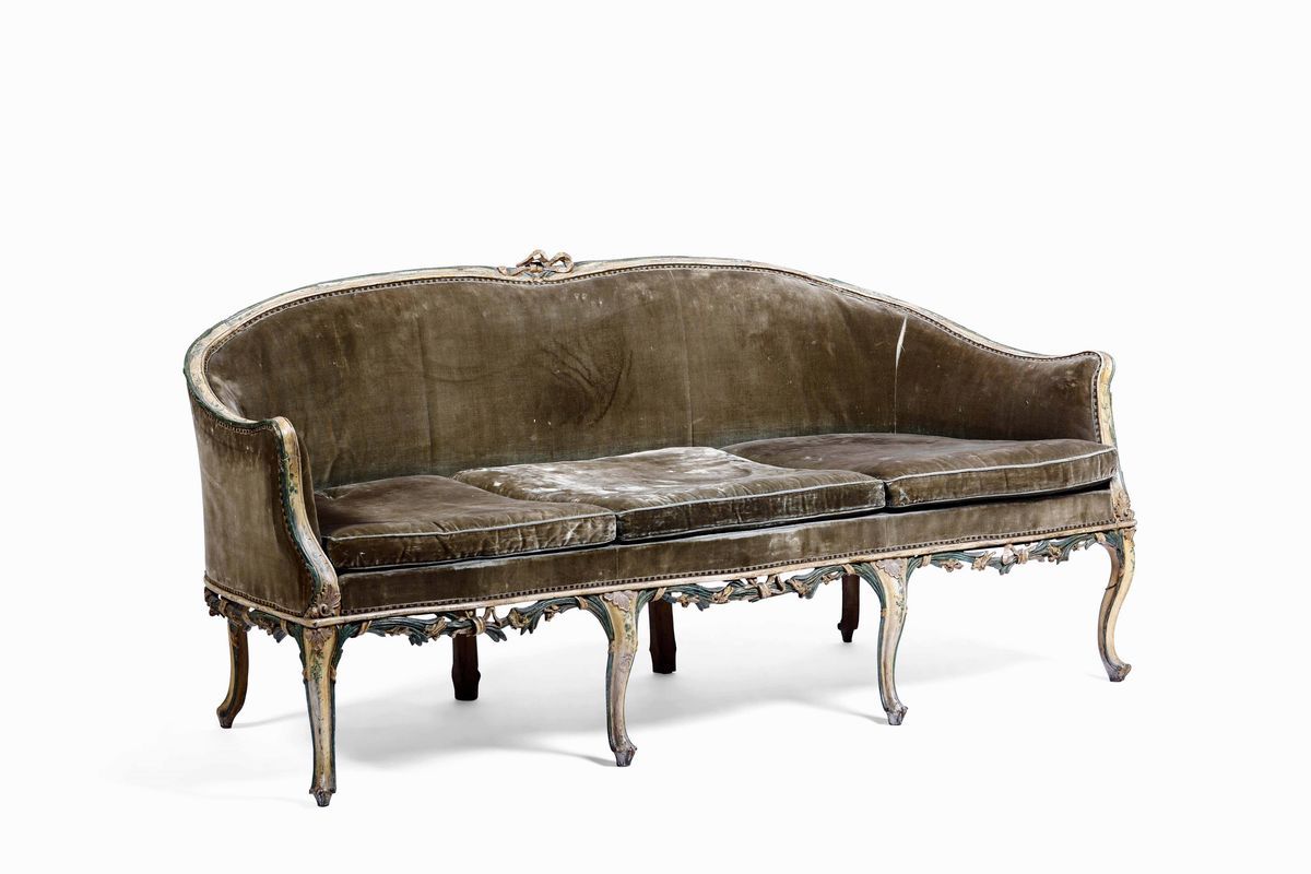 Coppia di divani in legno intagliato e laccato, Venezia XIX secolo