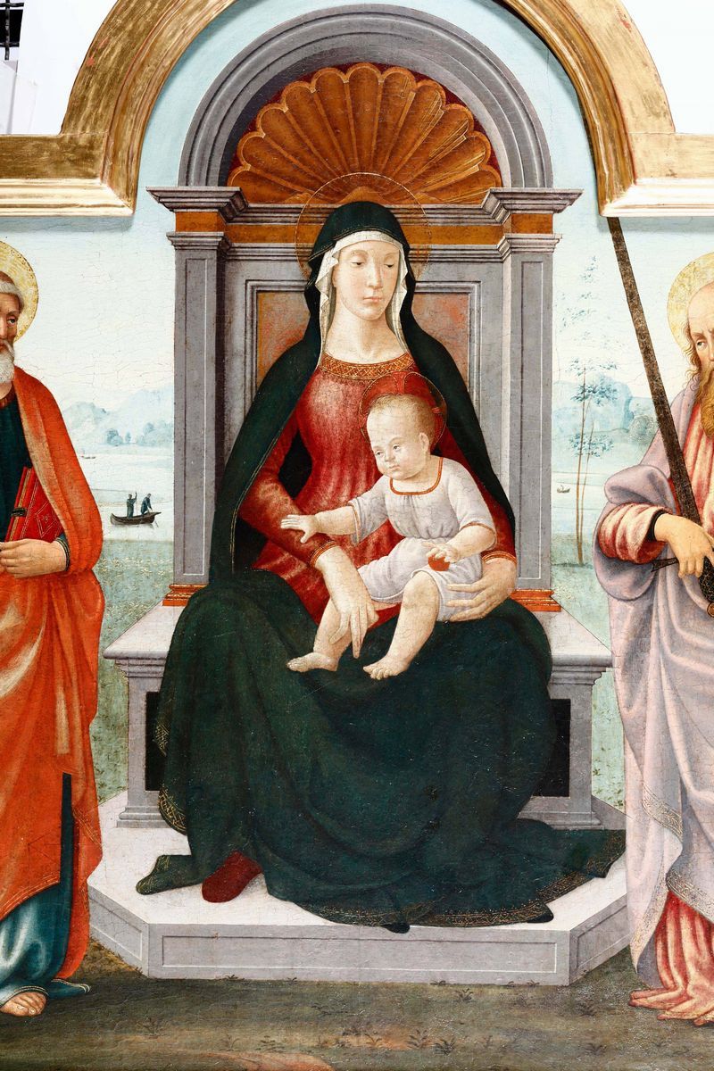 Davide Ghirlandaio (Firenze 1452-1525), attribuito a Madonna in trono e quattro santi (San Pietro, San Paolo, Santa Lucia, [..]