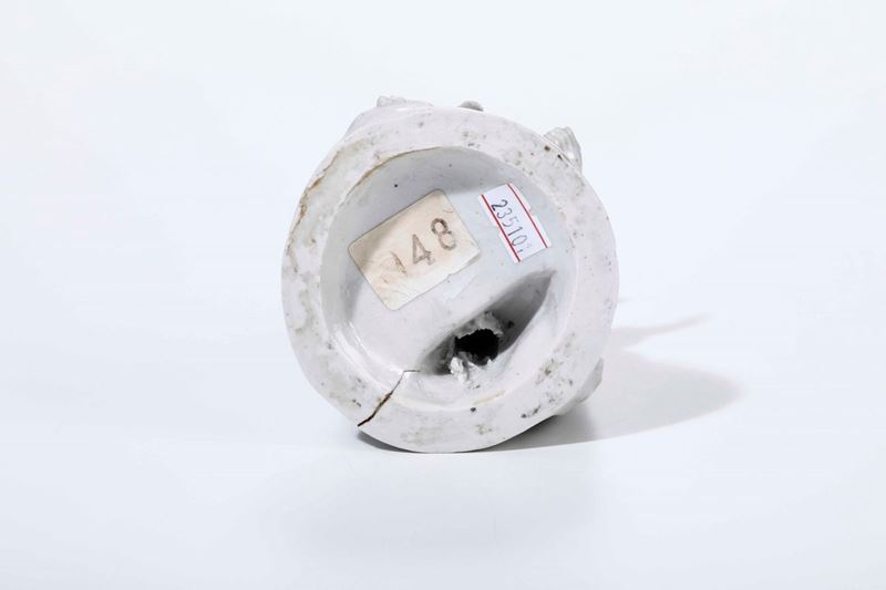 Porcellana bianca. Marca: assente. Altezza cm 18. Conservazione: punte delle dita della mano sinistra mancanti, qualche mancanza alla vegetazione