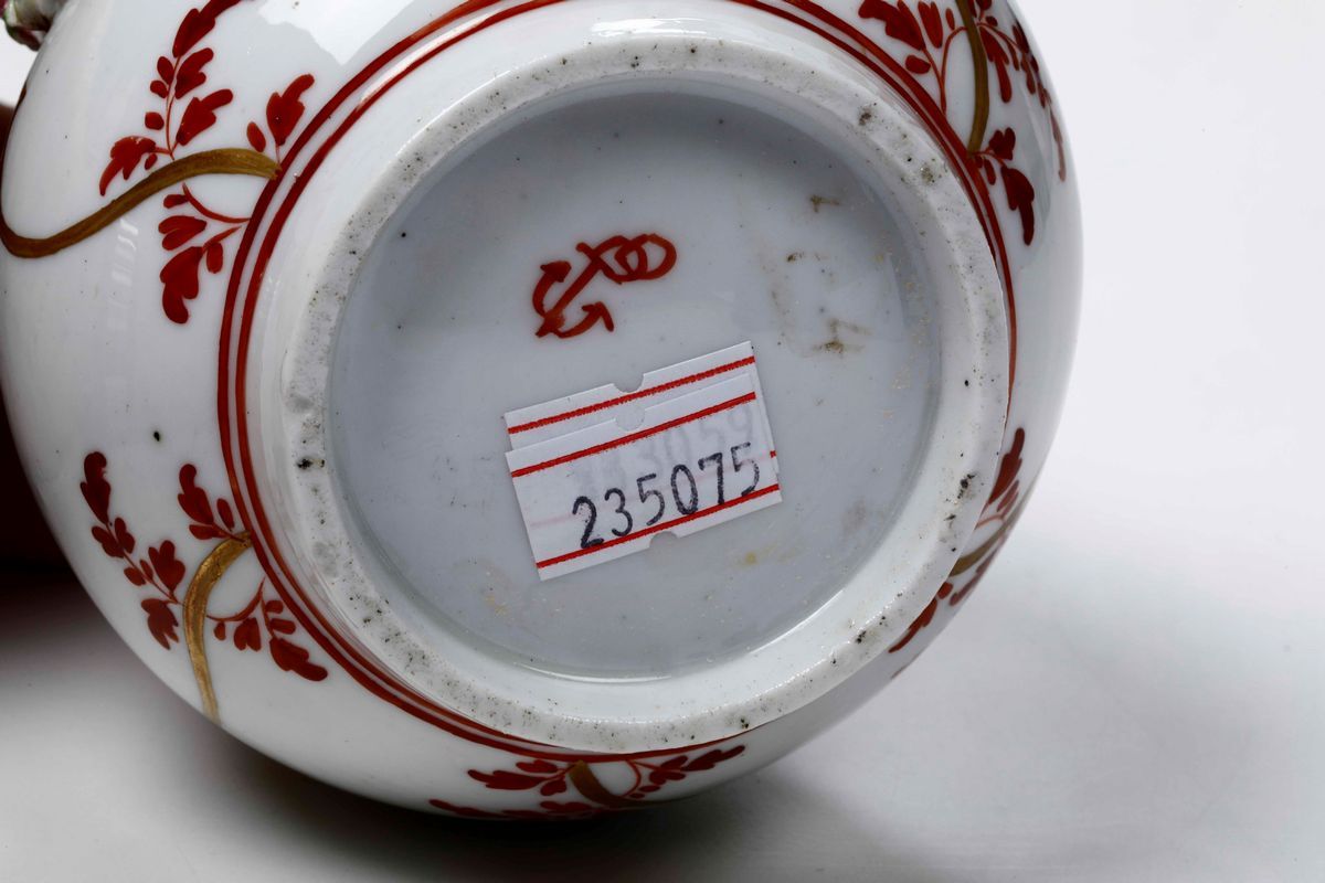 Porcellana. Marca: ancora in rosso. Dimensioni: altezza cm 15,3. Conservazione: ottima. Provenienza: “Col. Gatti Casazza Venezia” come da etichetta cartacea sotto il coperchio