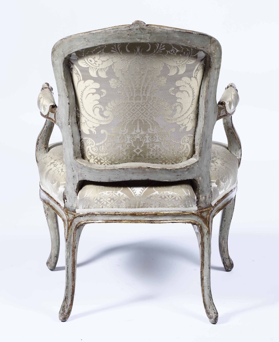 Poltrona in legno intagliato, laccato e dorato, Veneto XVIII-XIX secolo