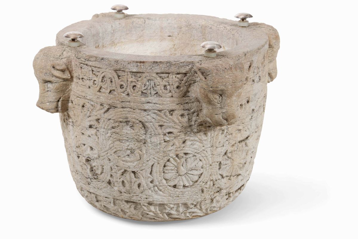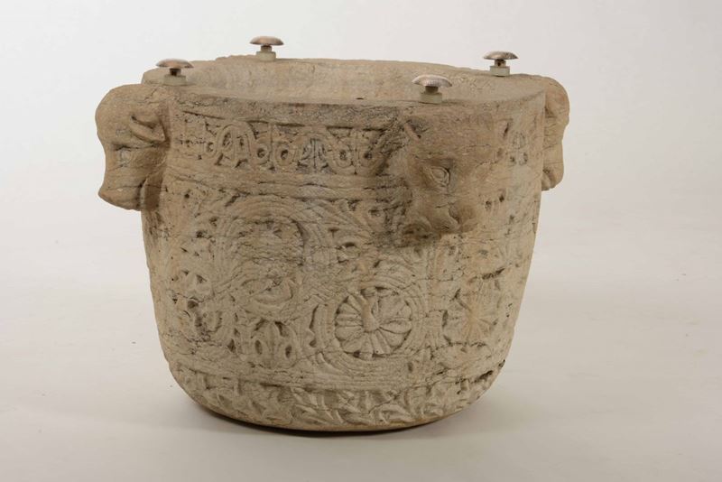 Vasca (fonte battesimale?) Pietra d’Istria scolpita Arte tardo romanica adriatica del XIV secolo