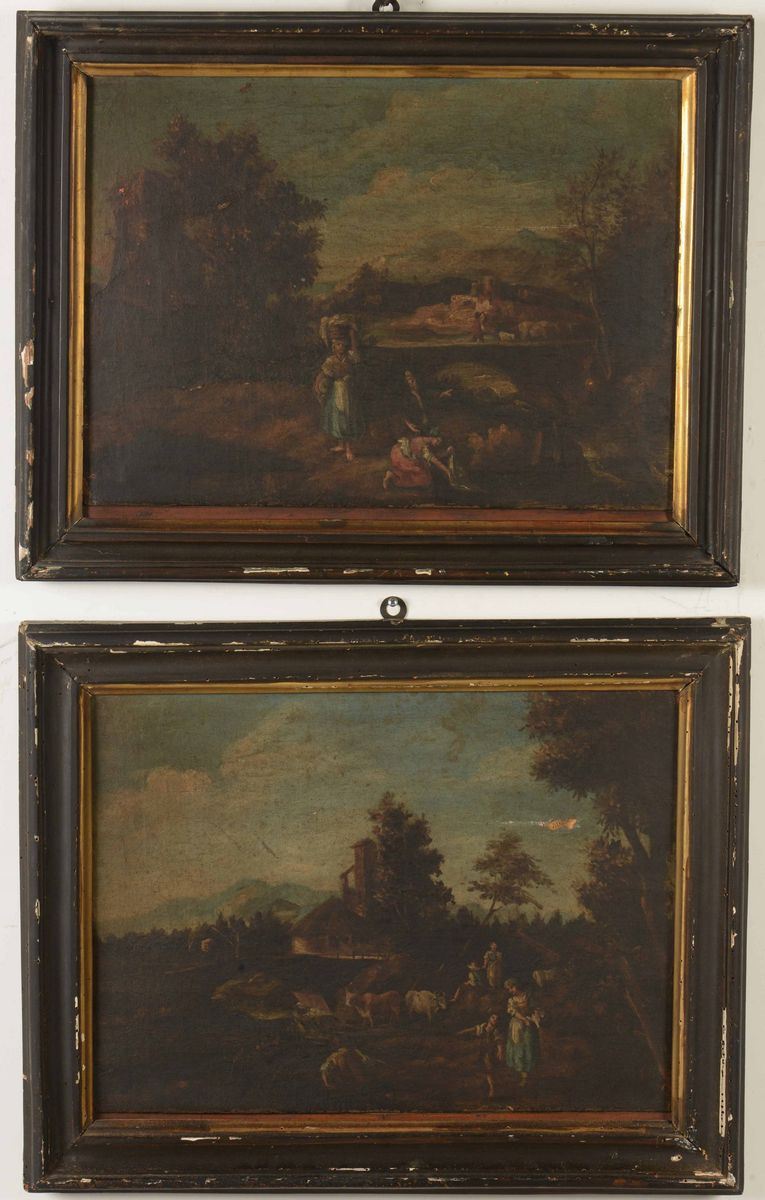 Scuola del XVIII secolo Paesaggi con contadini