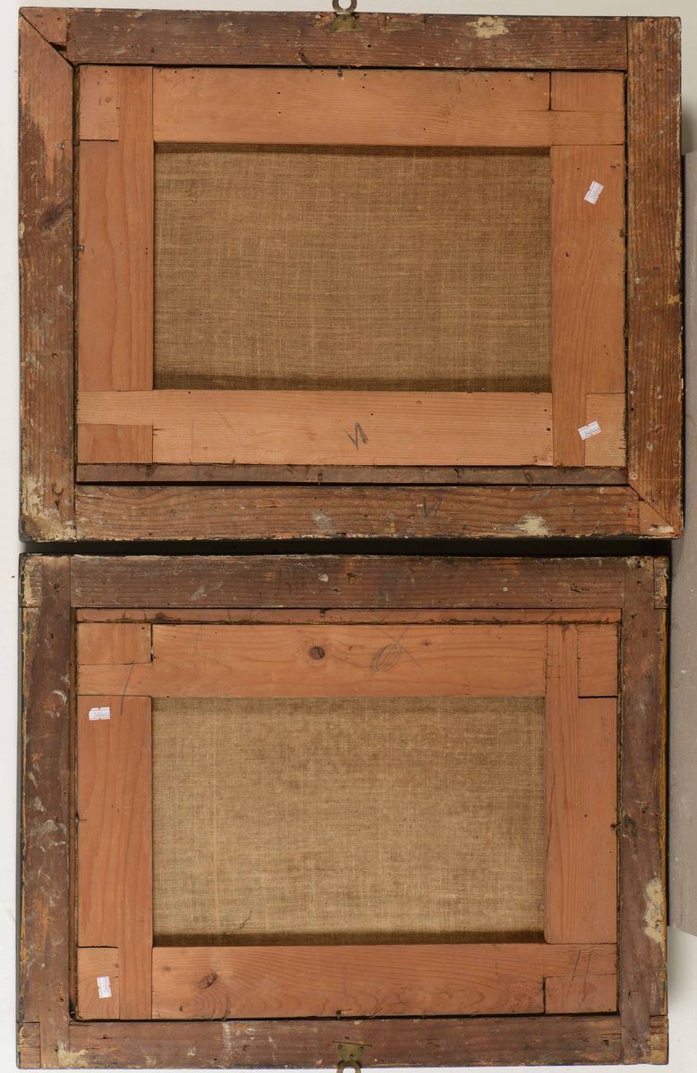 coppia di dipinti a olio su tela, cm 55x40