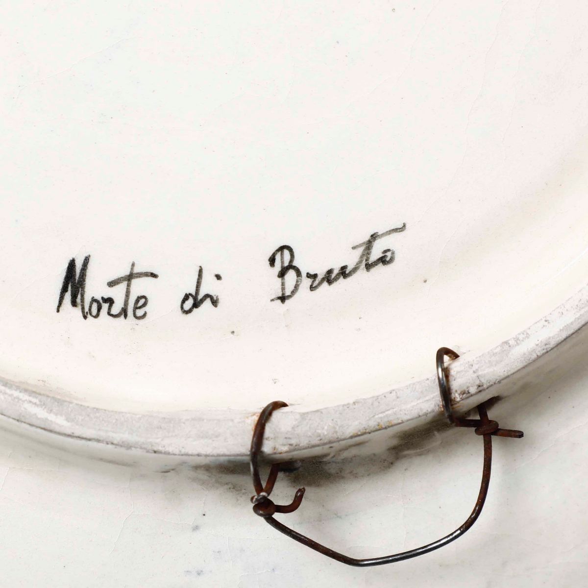 Maiolica policroma. Marca: ICA intrecciate e numeri 605/28; Morte di Bruto, in nero. Diametro cm 27,5. Conservazione: ottima