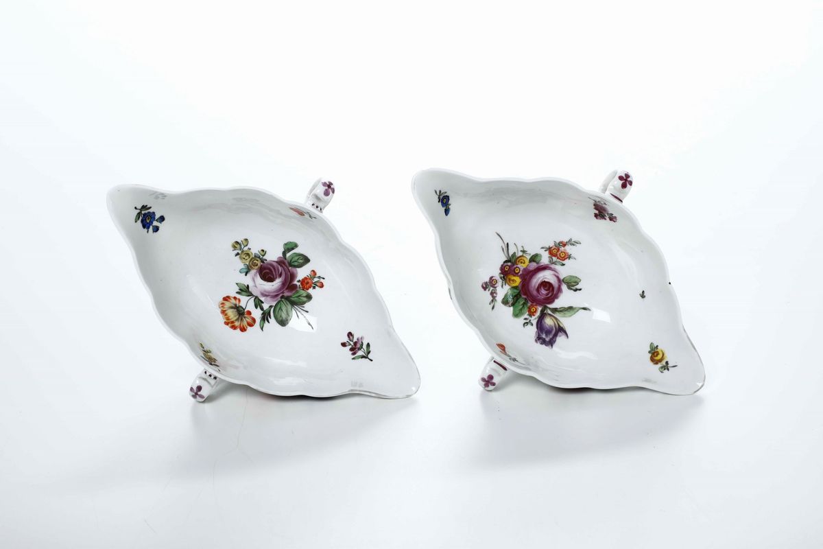 Coppia di salsiere Vienna, Manifattura Imperiale, 1750 circa Decorazione pittorica di Franz Sennes (attivo dal 1747 al 1814)