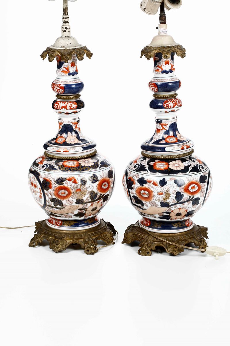 Coppia di vasi montati a lampada Manifattura europea su ispirazione delle porcellane Imari, prima metà del XX secolo
