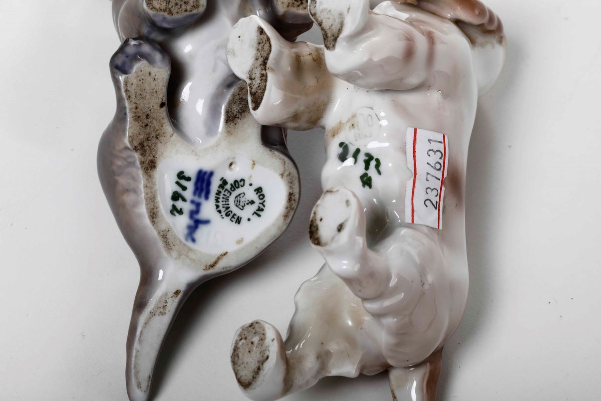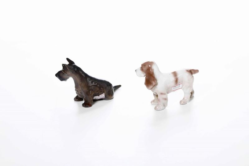 Due figurine di cani Danimarca, Copenaghen, Manifattura Bing & Grondahl, Manifattura Royal Copenhagen, XX secolo