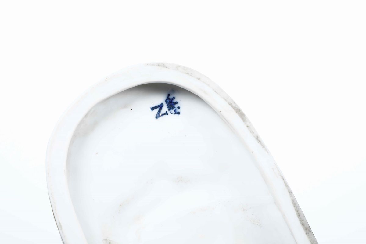 Porcellana policroma. Marca: N con corona in blu. Dimensioni: altezza cm 19; cm 30x12. Conservazione: ottima, qualche mancanza ai petali dei fiori