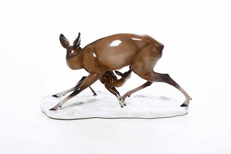 Gruppo con cervi Germania, Manifattura Rosenthal, 1967 Modello di A. Roehring
