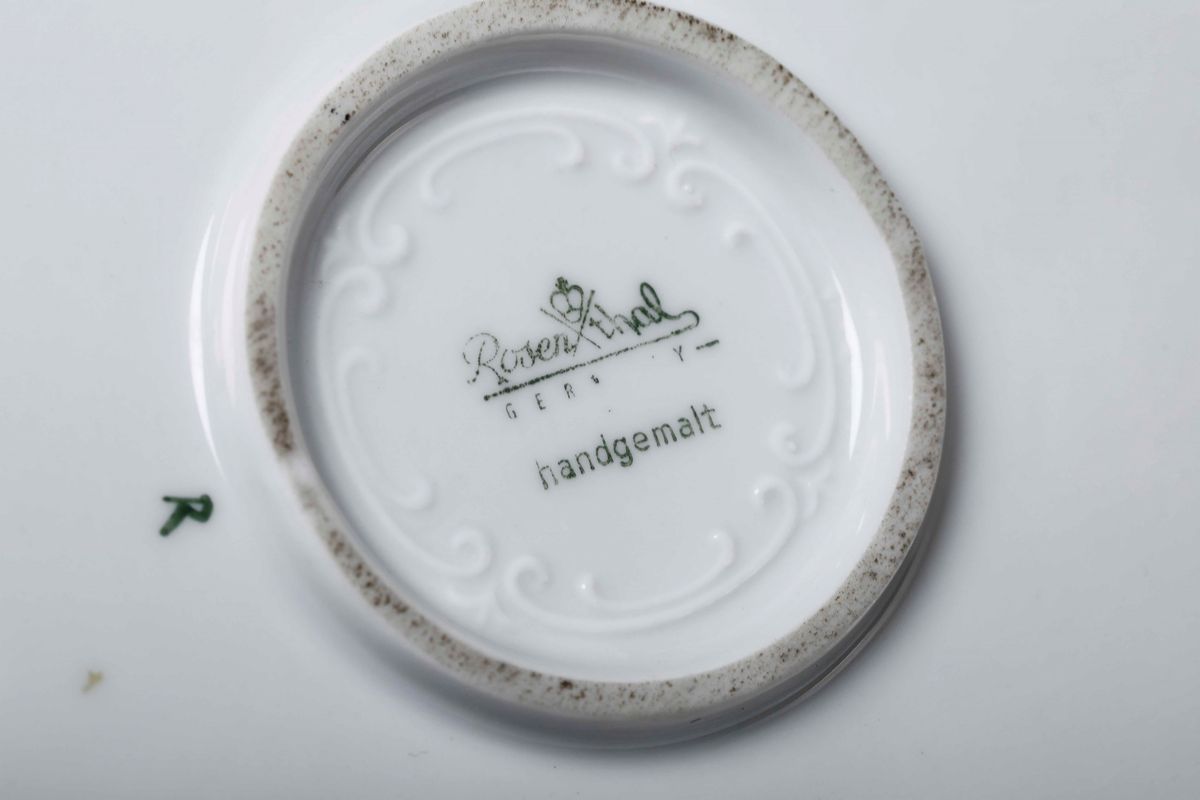 Porcellana policroma. Marca: “Rosenthal Germany Handgemalt” in verde. Dimensioni: altezza cm 16,5; cm 31x14. Conservazione: perfetta