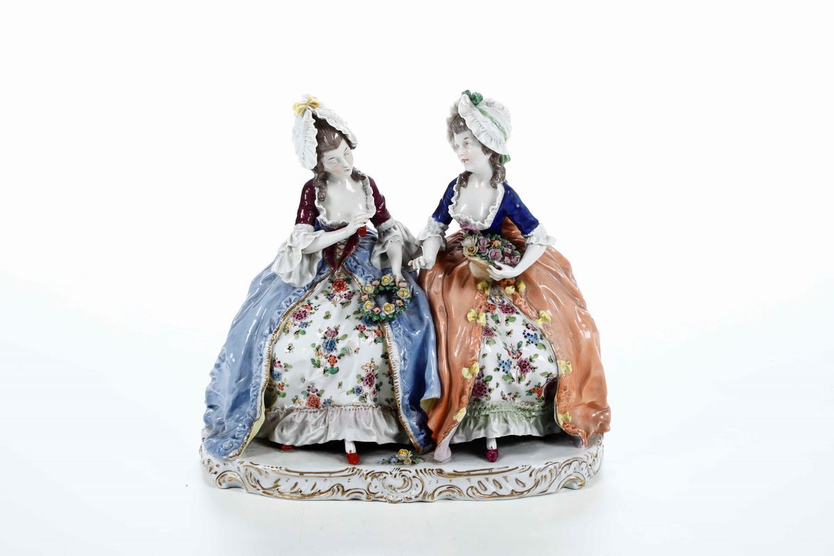 Gruppo di due giovani in abiti settecenteschi Probabilmente Turingia, XX secolo