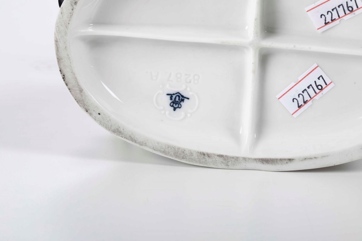 Porcellana. Marca: “HUS” con corona in blu. Dimensione: altezza cm 17. Altezza cm 17. Conservazione: ottima, insignificante mancanza ai fiori al lato della dama
