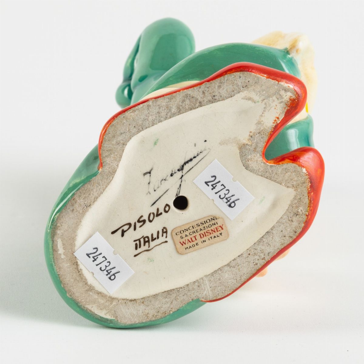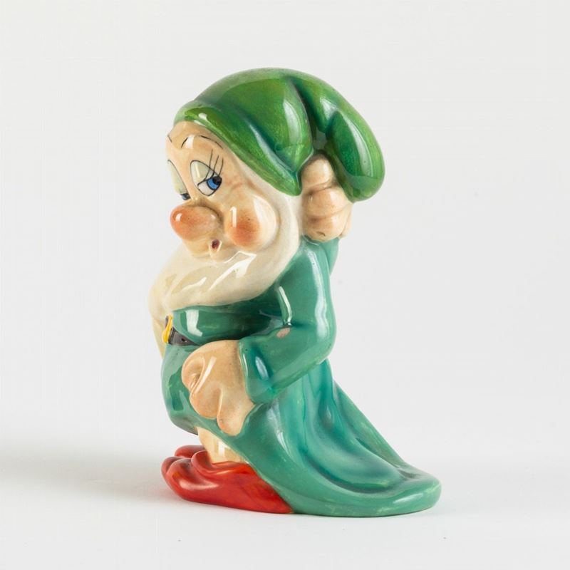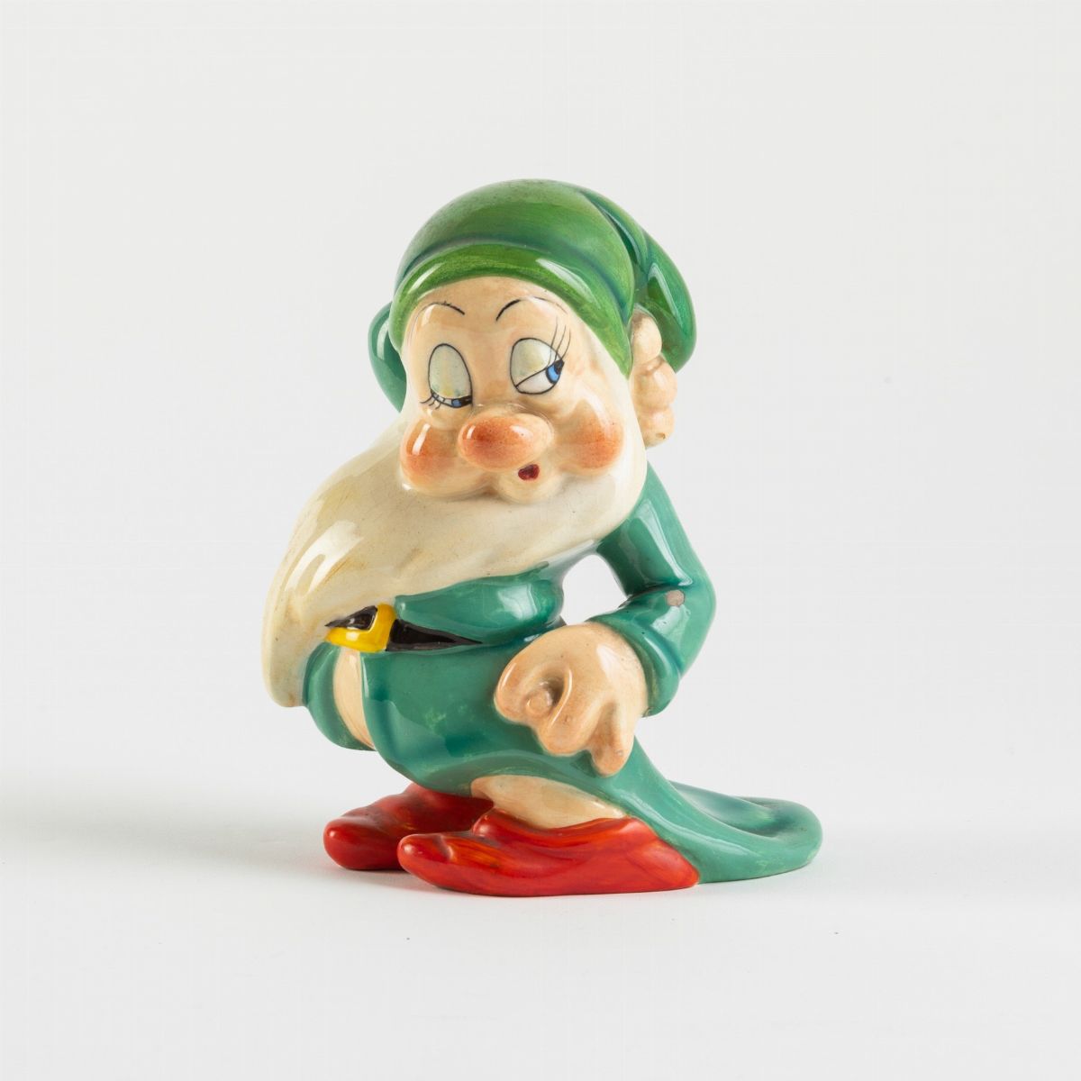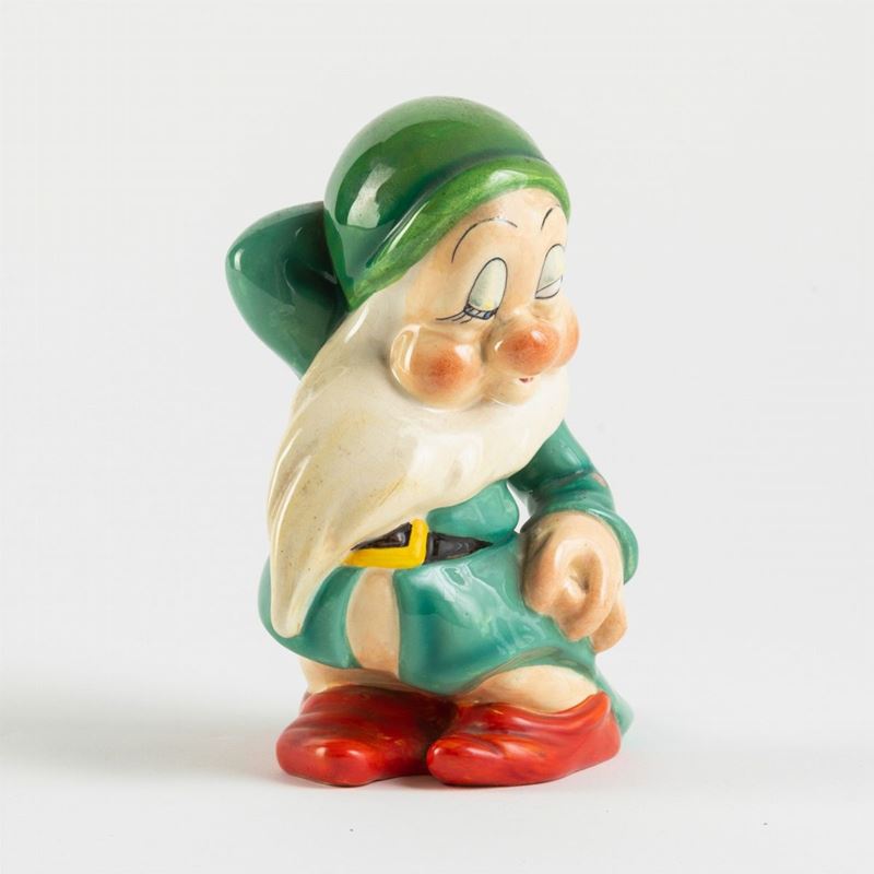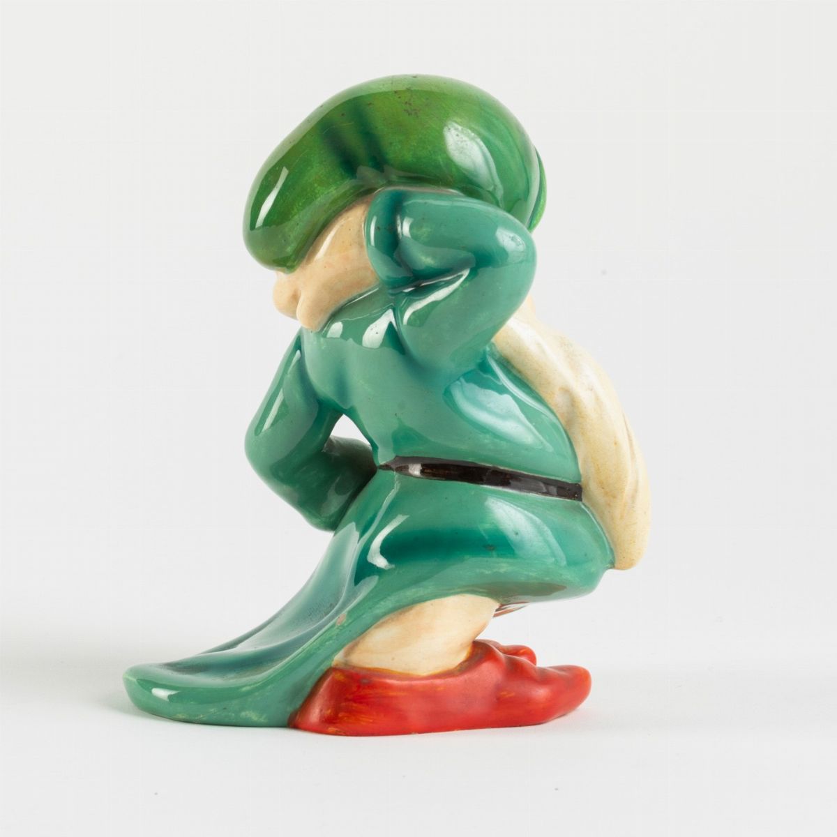 Figurina in terraglia a colaggio con decoro policromo raffigurante uno dei sette nani.