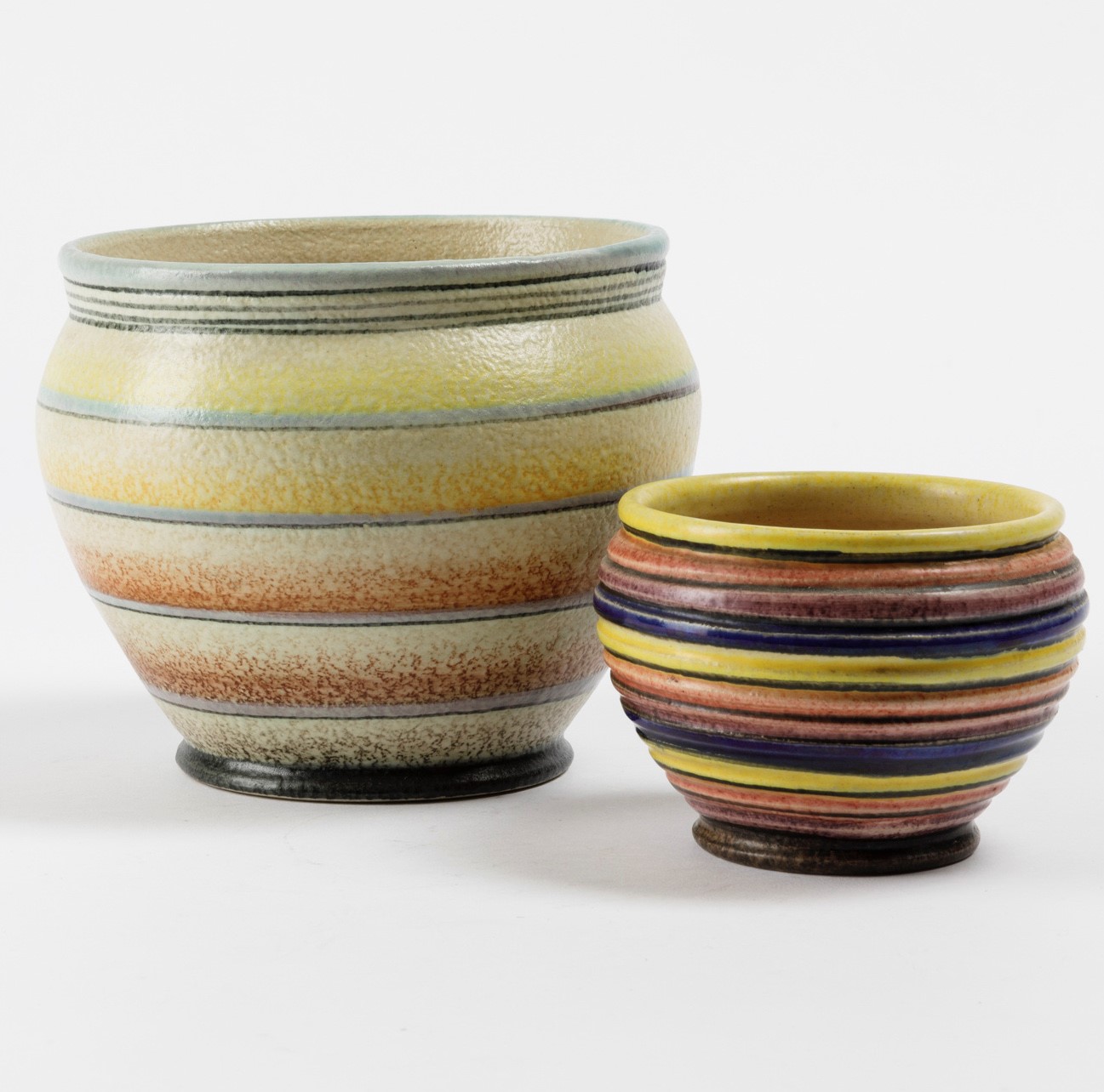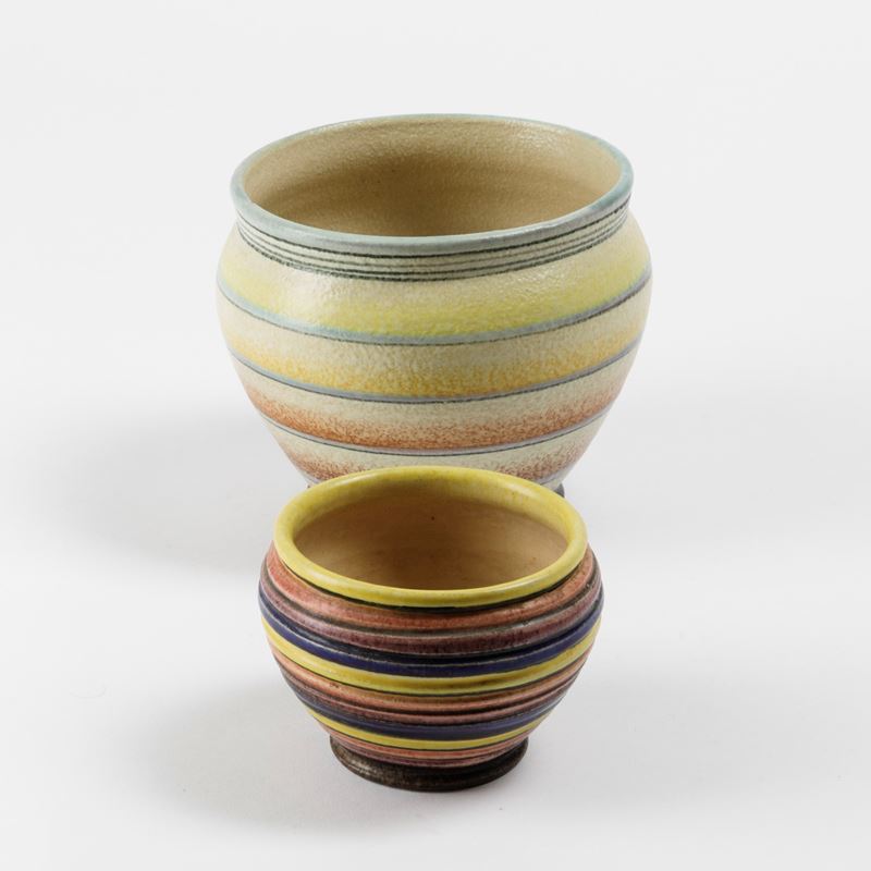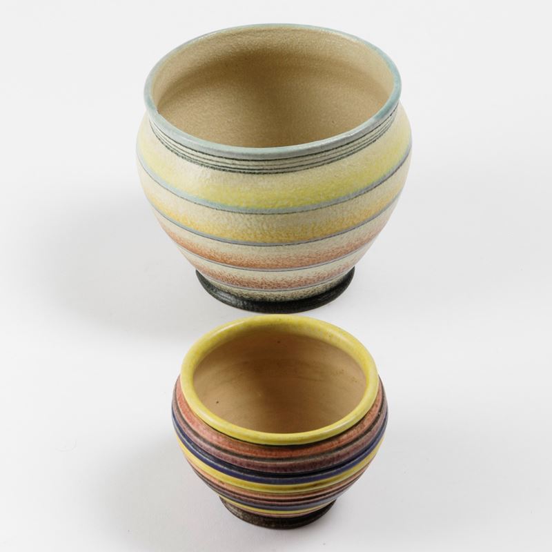 Two earthenware cachepots. H 9 and 15cm