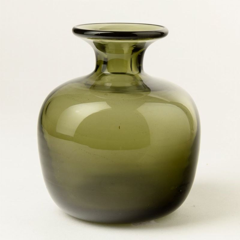 Vaso globulare con ampio collo svasato in vetro pesante color talpa.