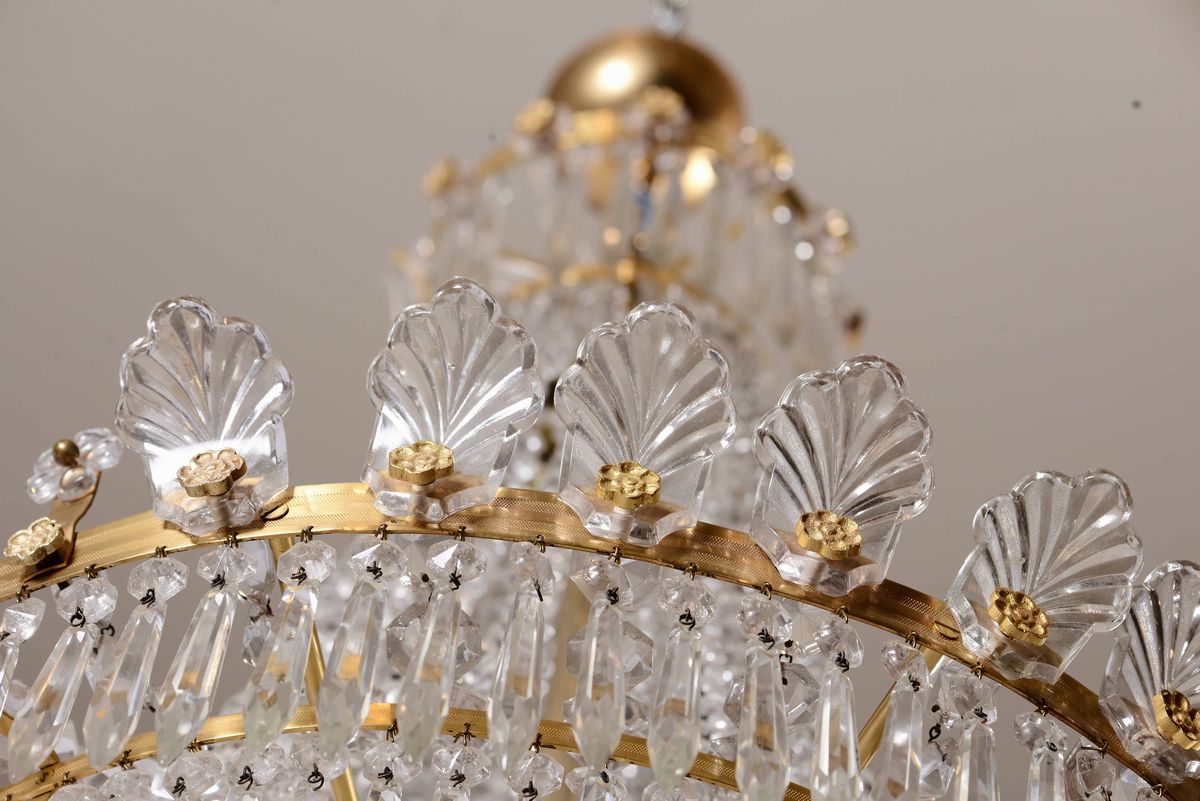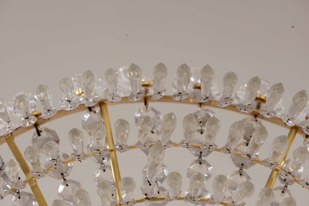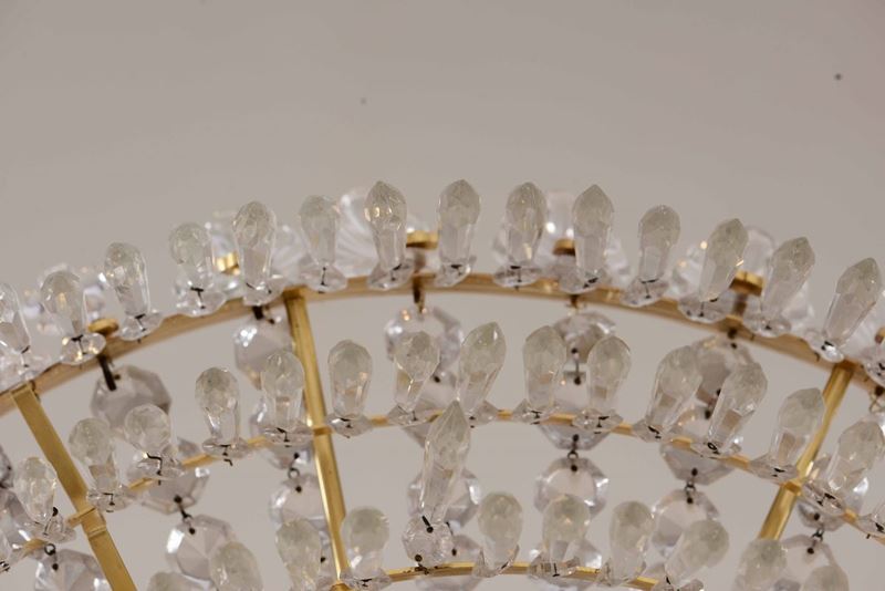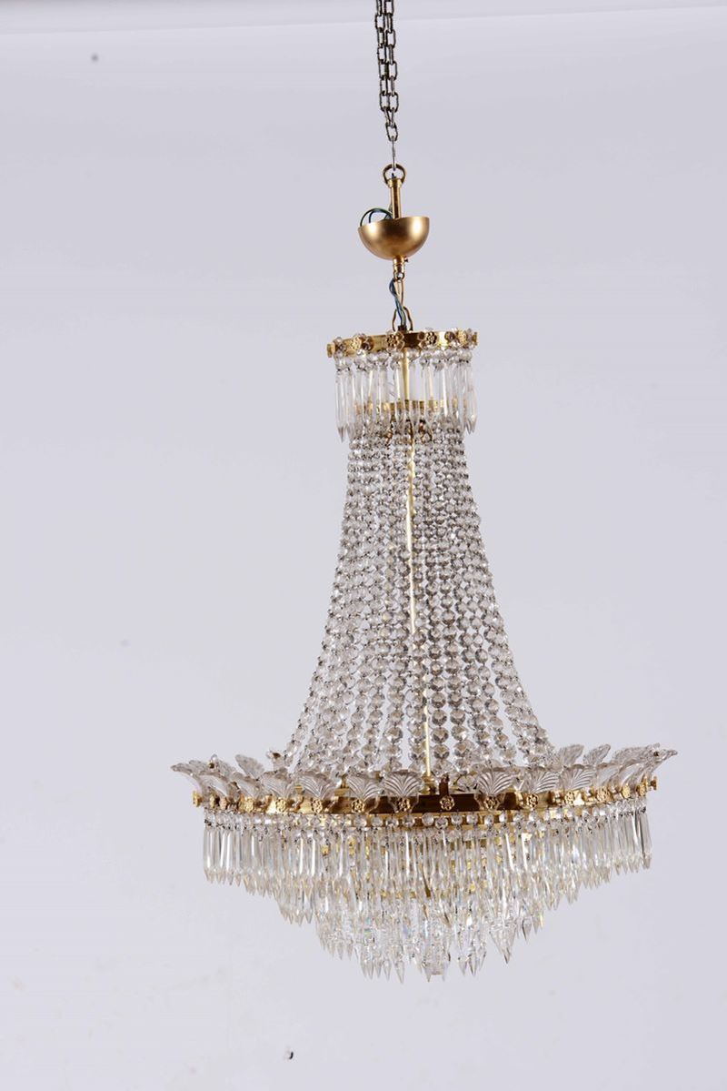 Lampadario in metallo dorato e cristalli, XXI secolo