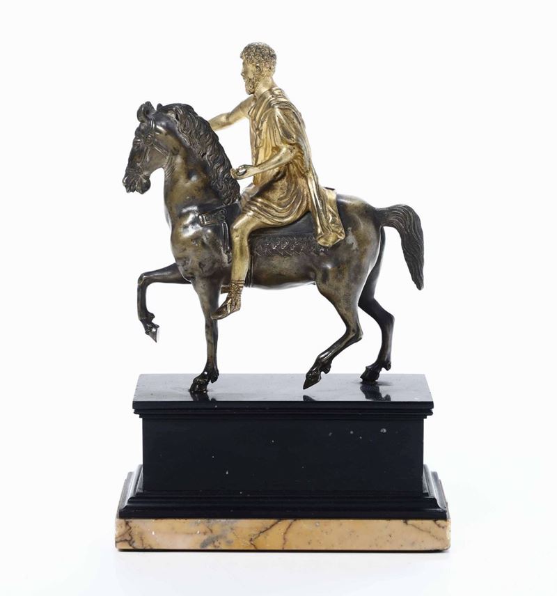 bronzo dorato e brunito, base in marmo, altezza complessiva cm 23,5