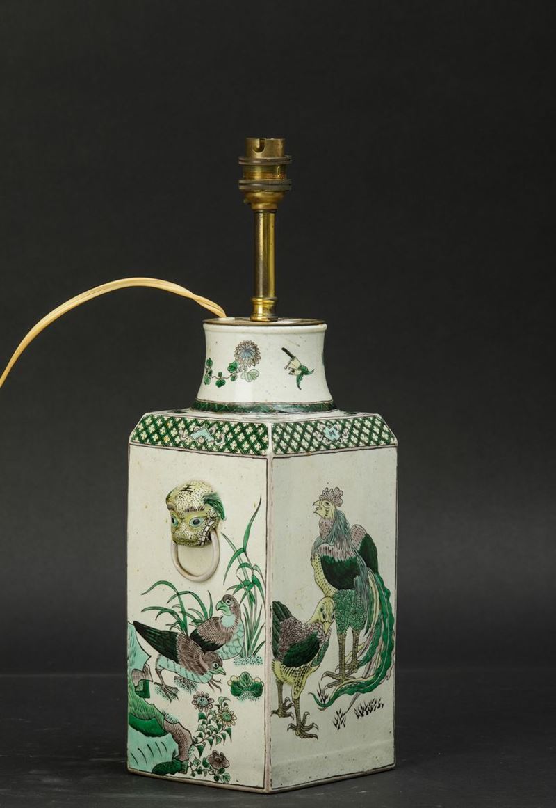 Famille Vert porcelain with fowls, a landscape and floral decors.