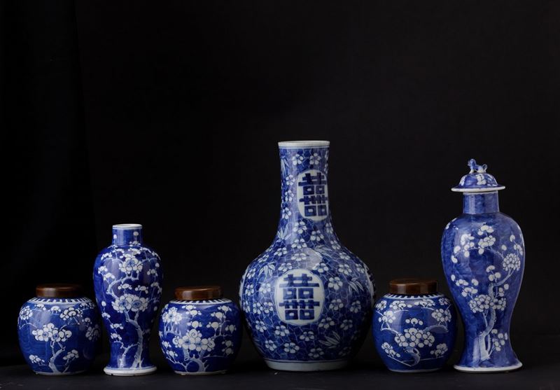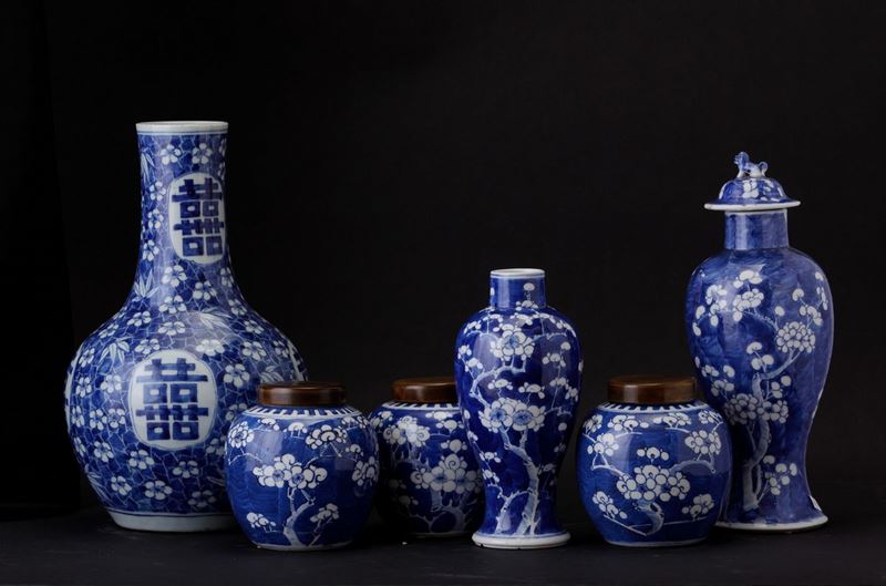Six porcelain vases, China, Qing Dynasty, 1800s