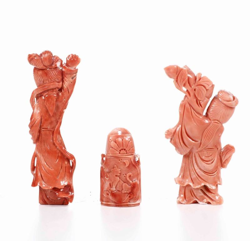 Three coral items, China, early 1900s