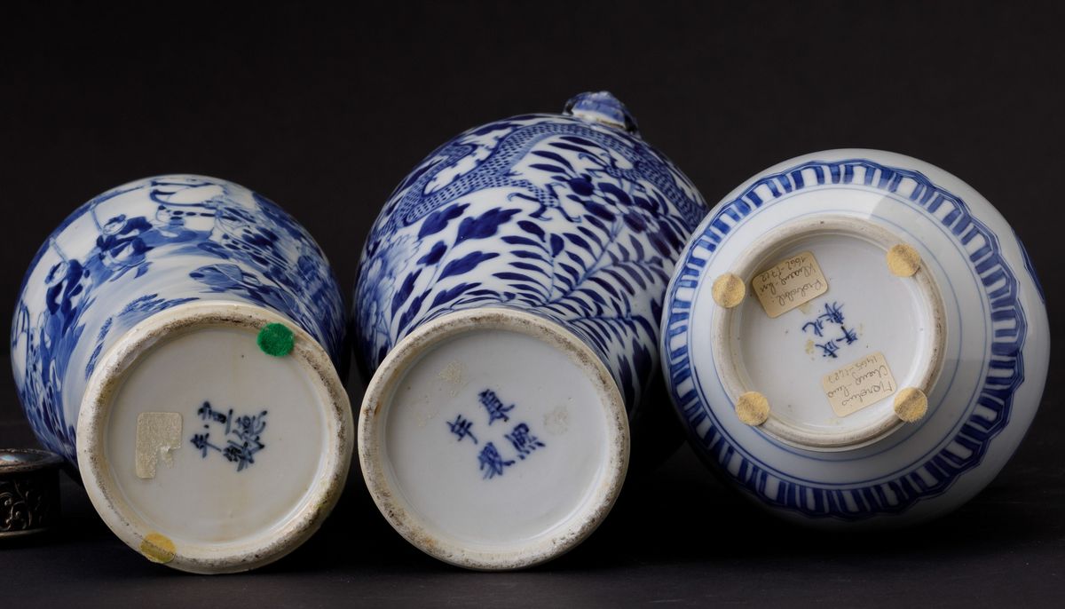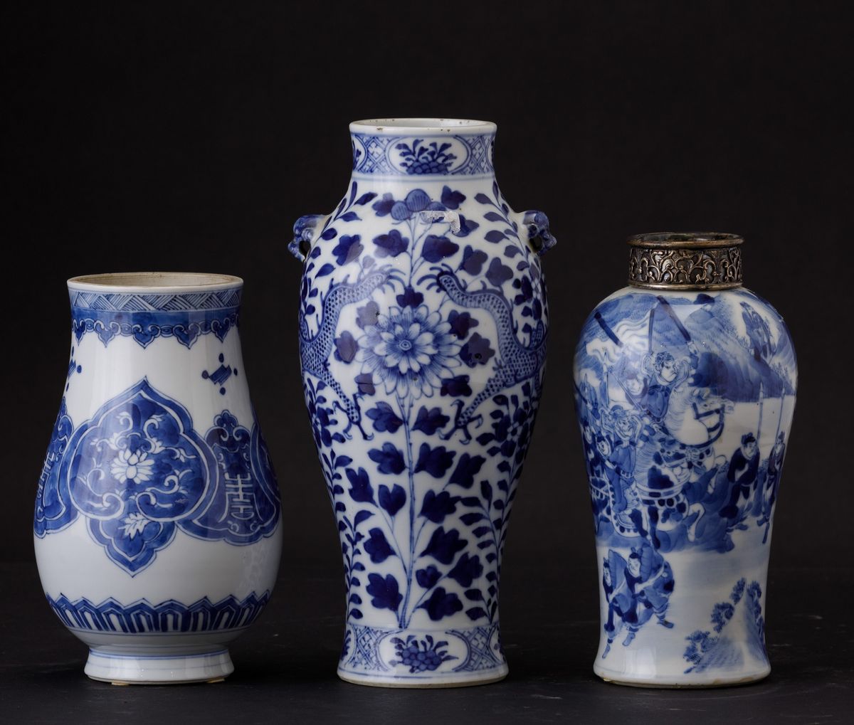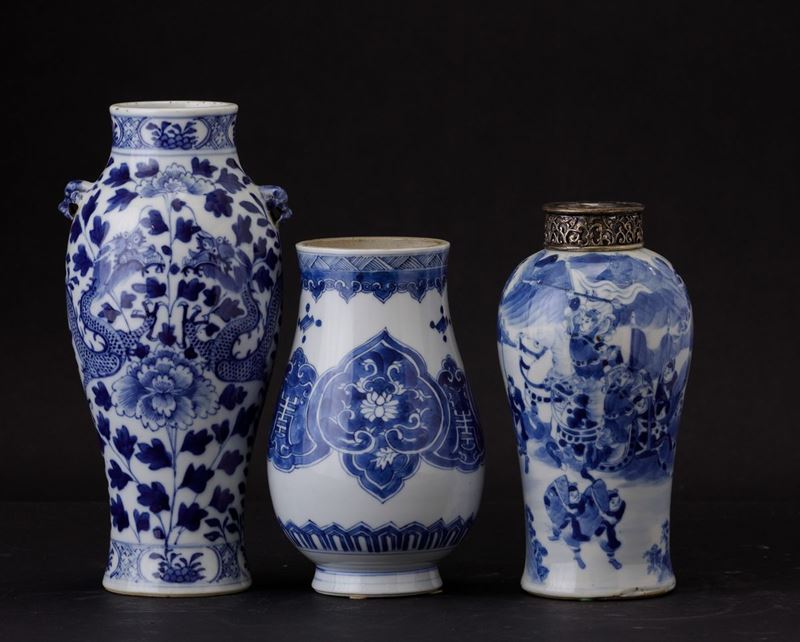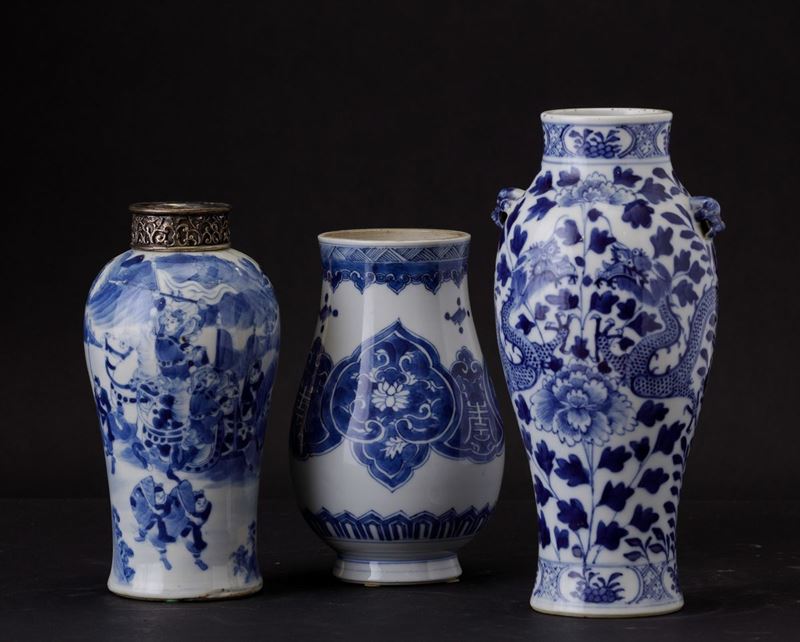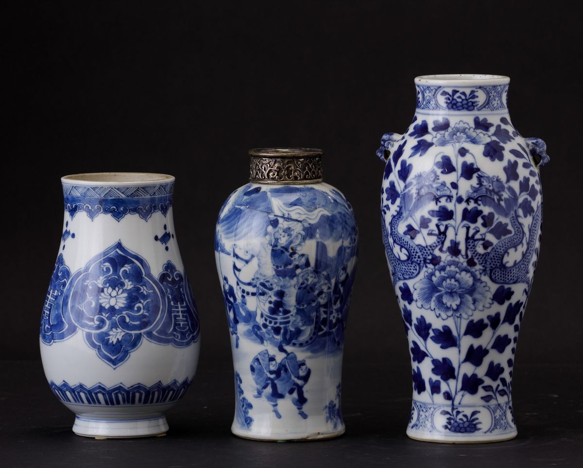 Three porcelain vases, China, Qing Dynasty