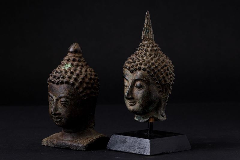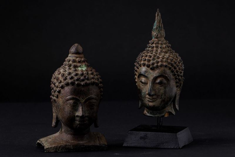 Two bronze Buddha heads, Thailand, 1800s