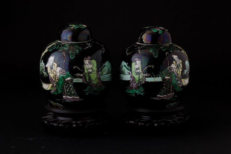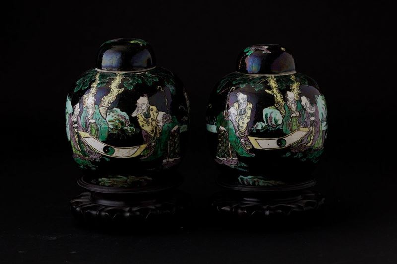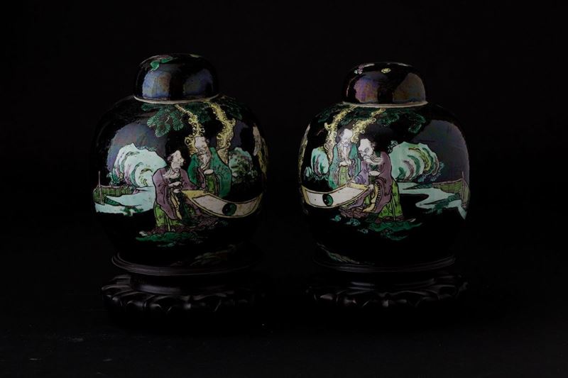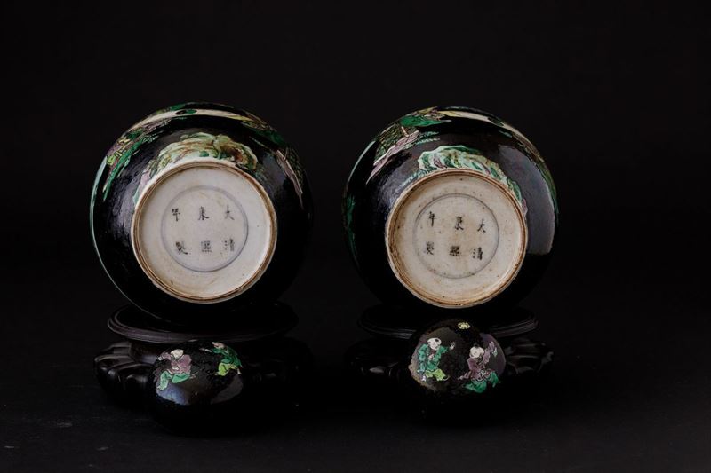 1800s. Famille Noire porcelain. Apocryphal Kangxi mark