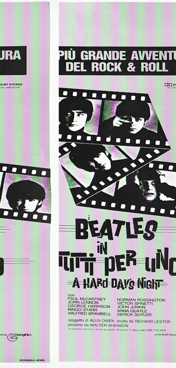 A couple of first edition window cards for the italian release of Help!, 1965, and A Hard Days Night , 1982. QUALITY: A. Very good condition.