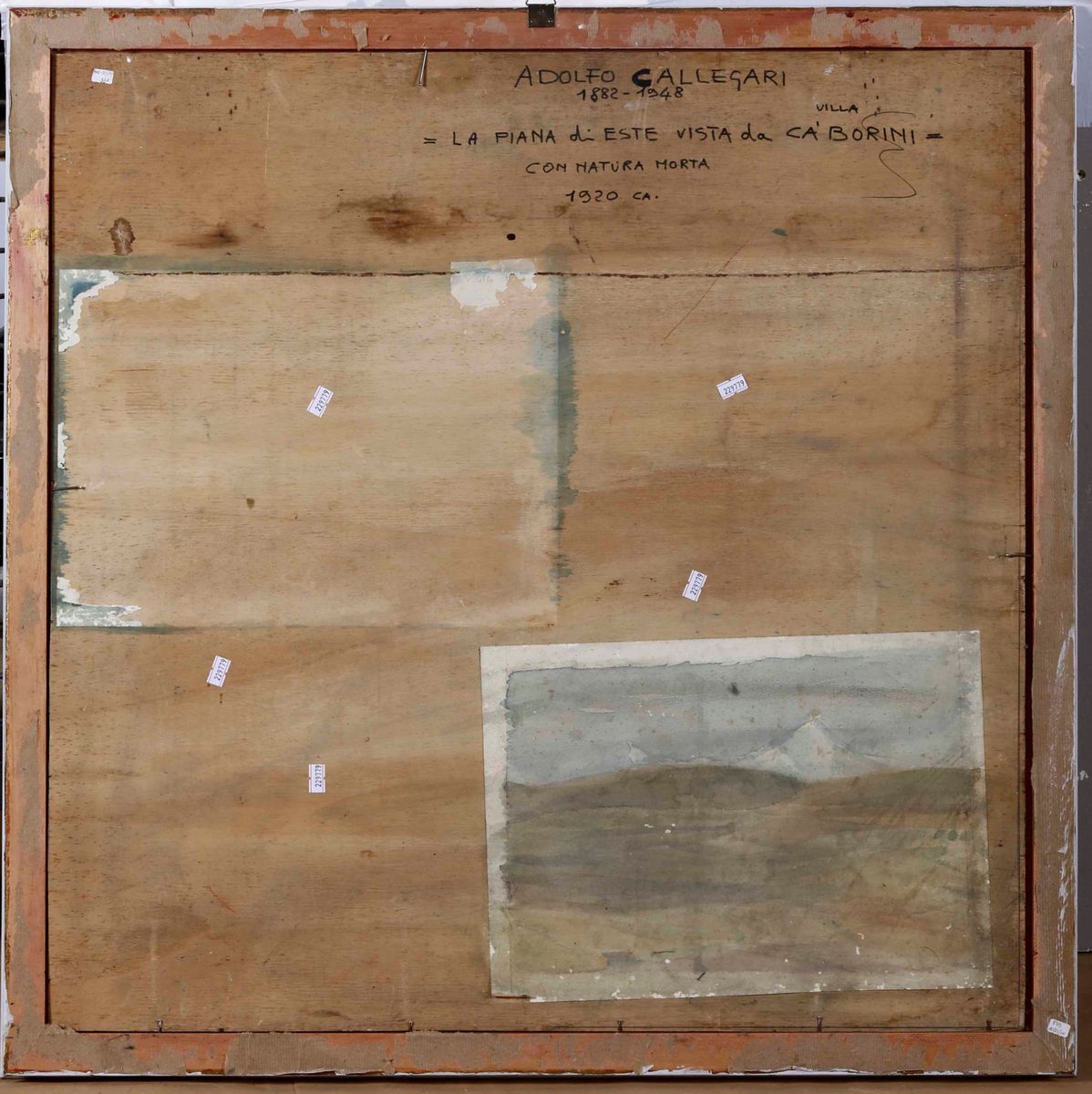 Adolfo Callegari (Padova 1882 - Arquà Petrarca 1948) Natura morta con veduta