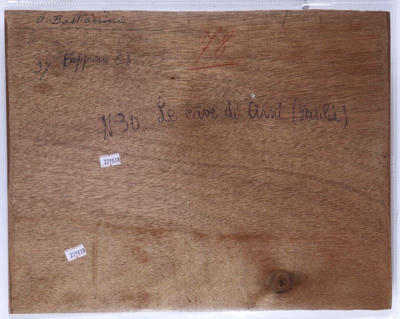 1) Le Cave di Arni Versilia, firmato “A. Bastianini” davanti e sul retro, olio su tavola, cm 33 x 41