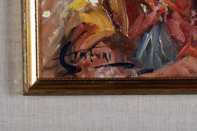 olio su tela, cm 29x23, firmato in basso a sinistra