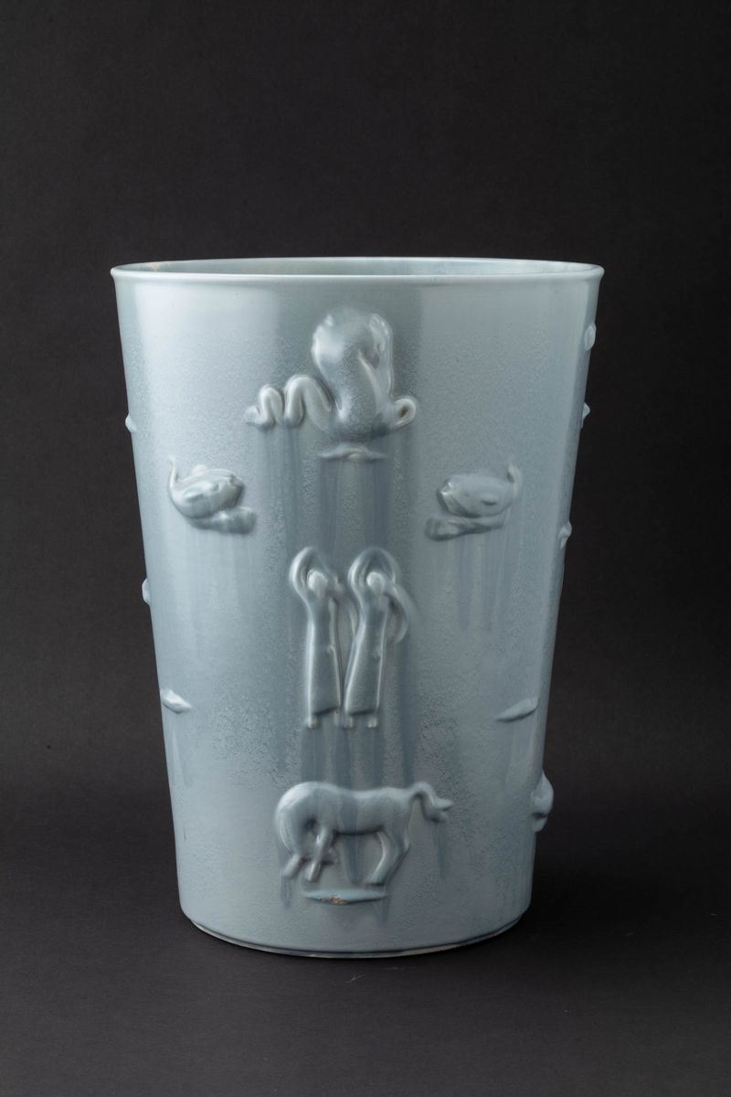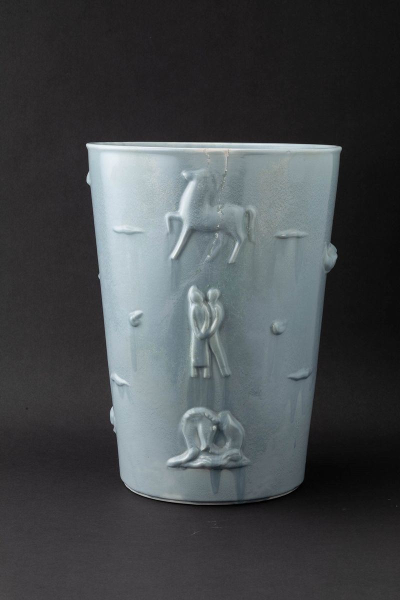 Grande vaso troncoconico in terraglia a colaggio con figure a rilievo (modello 1516/0)