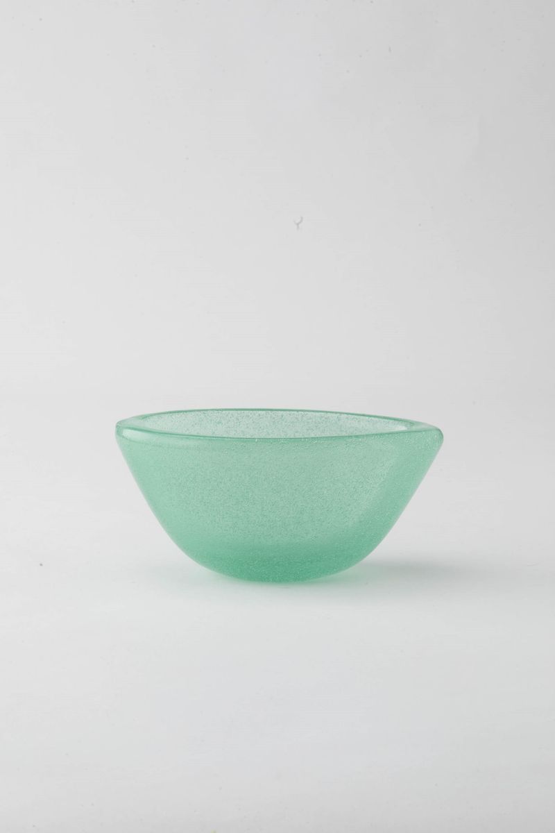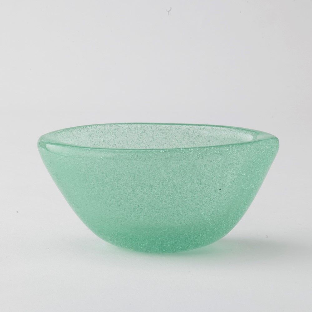Coppa ovale serie A Bollicine in vetro soffiato verdino