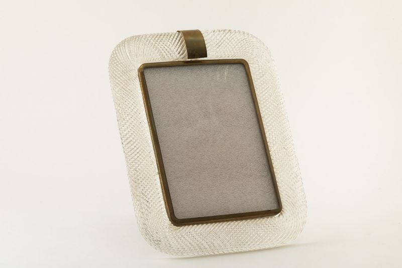 Grande cornice portaritratti in vetro a torciglione con struttura in ottone