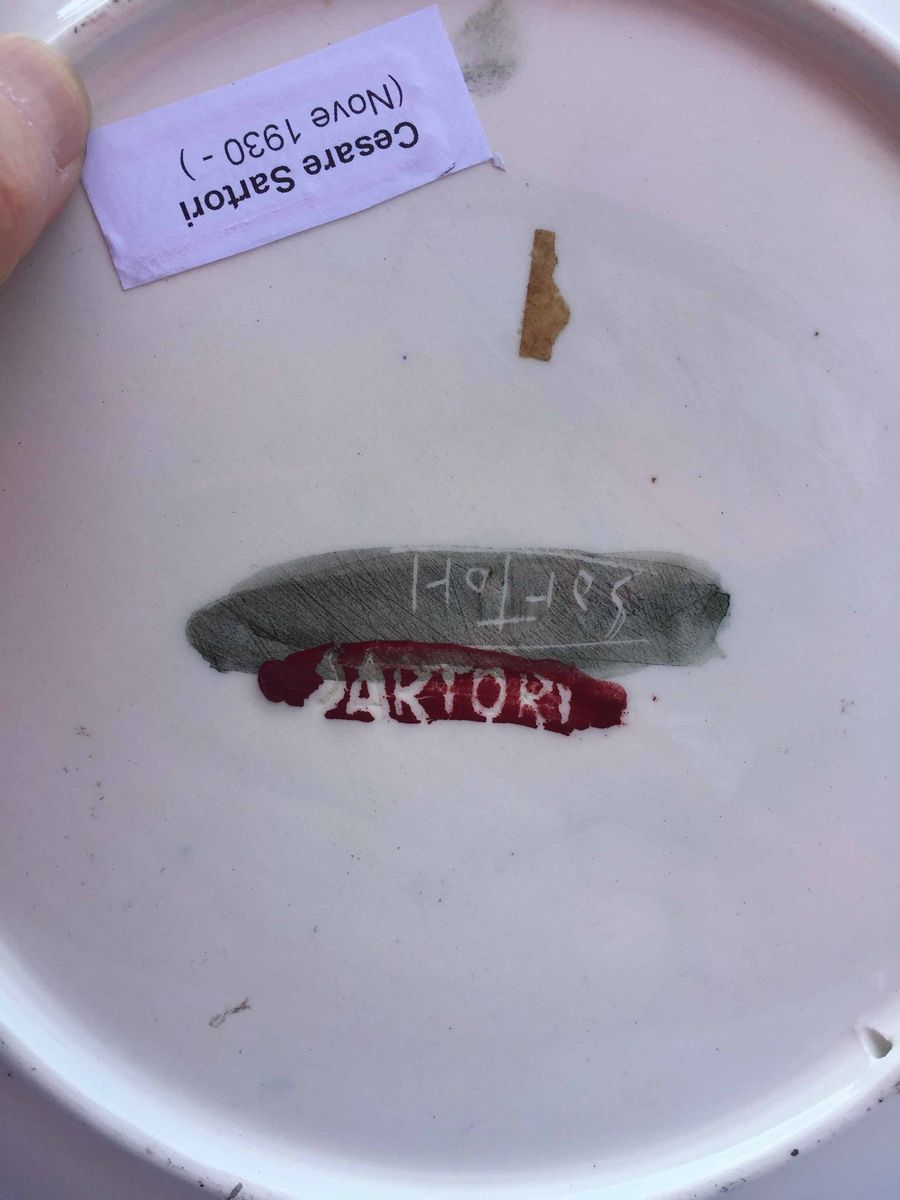 Piatto con granchio e pesce stilizzati Diametro cm 26 Firmato due volte per esteso sul retro