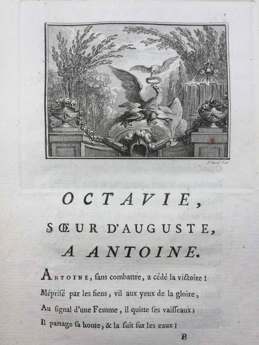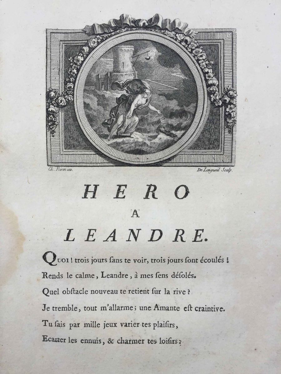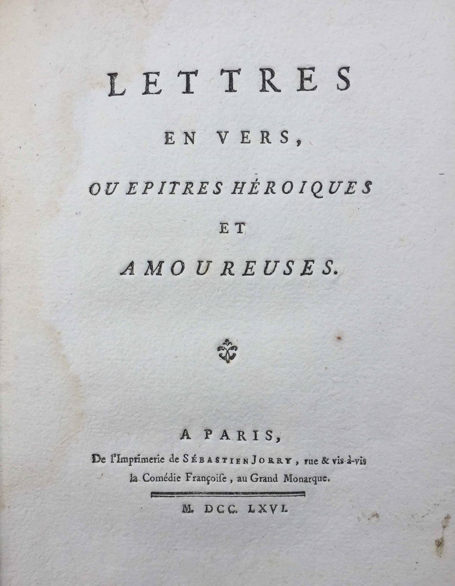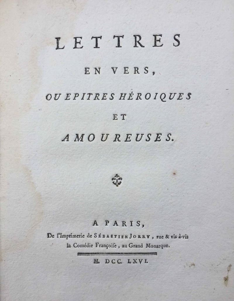 Lettres en vers, ou epitres Héroiques et AMOUREUSES. A PARIS, De l'Imprimerie de Sébastien Jorry, rue & vis - à - vis la Comédie Françoise, au Grand Monarque. M.DCC.LXVI. con 7 frontespizi e illustrazioni di Joseph de Longueil (1730- 1792). Qualche macchia ma mai sulle incisioni.