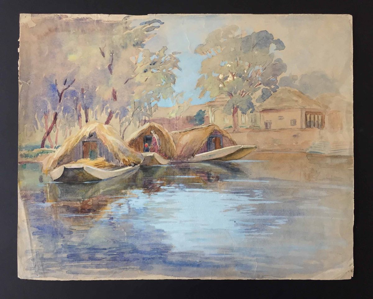 “Castello con minareto”, cm 34,5 x 29 “Chiatte su fiume”, cm35 x 28,5