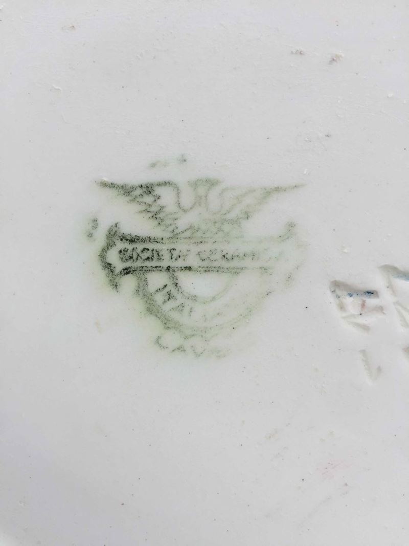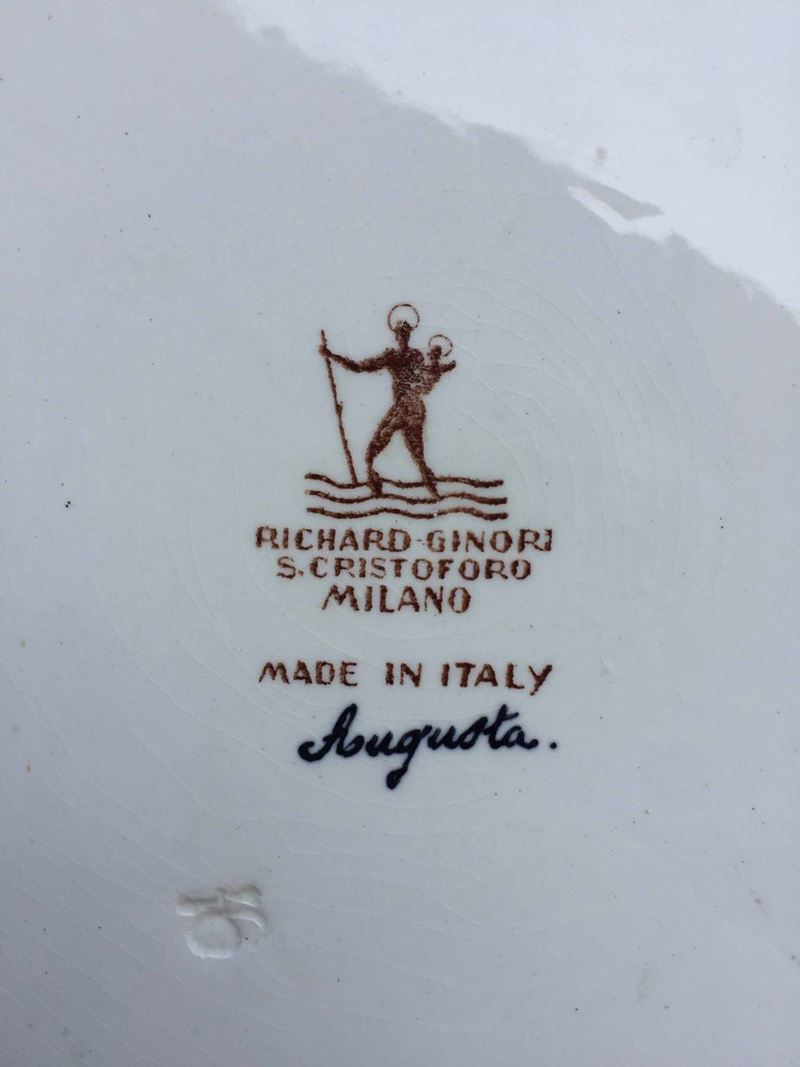 Il più grande marcato R.Ginori San Cristoforo (serie Augusta) con motivi a fiori, il più piccolo marcato Laveno con cerbiatto stilizzato su fondo rosso. Diametri cm.24,1, cm 20
