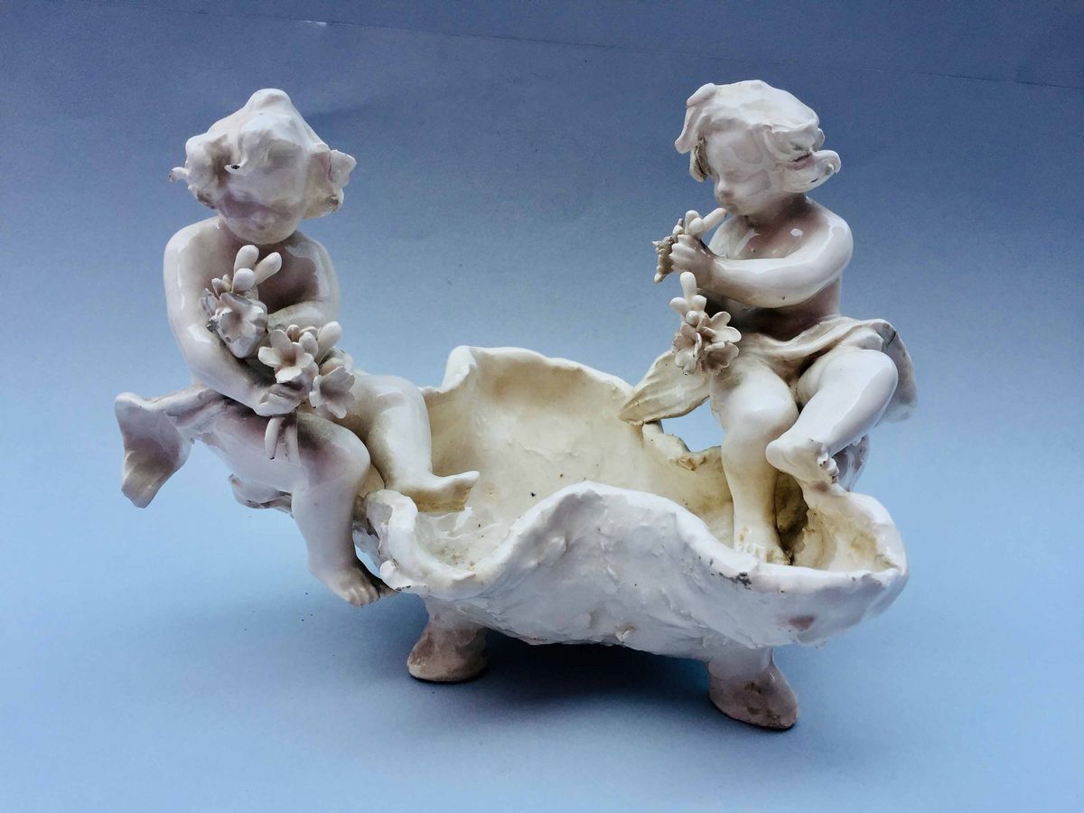 Vasetto "Putti con fiori" Altezza cm 19 , larghezza cm 24 Lembo del putto di sinistra incollato, minori mancanze Firmato per esteso sotto la base