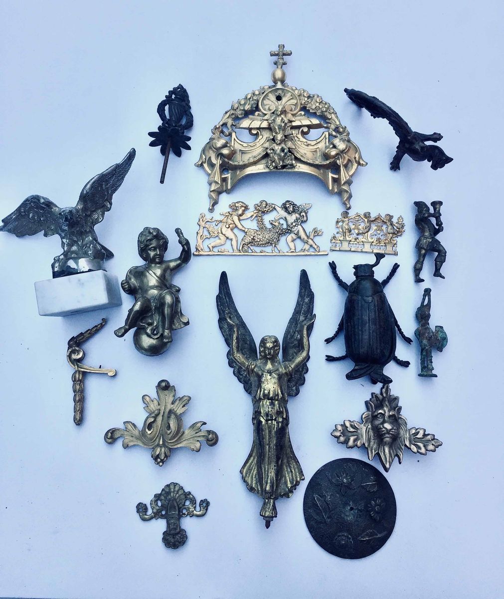 20 fregi, due in bronzo, gli altri in lamierino; più numerosi fregi e statuette in bronzo di epoche, misure e provenienze diverse.