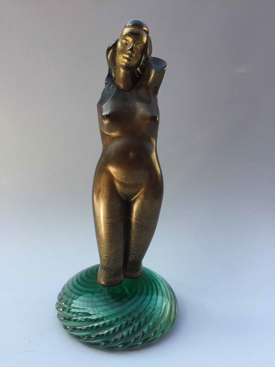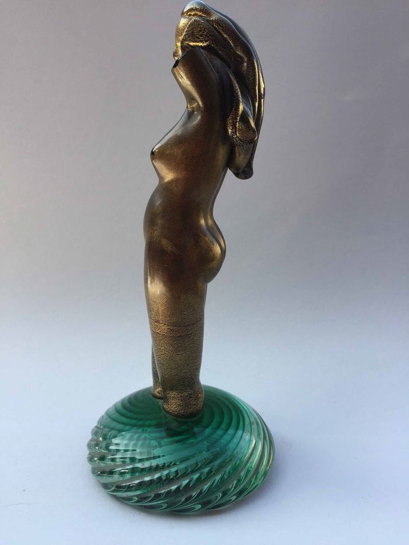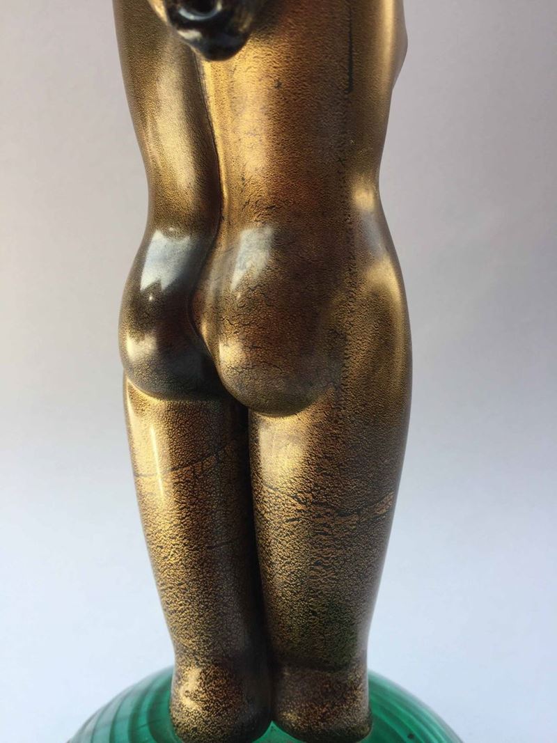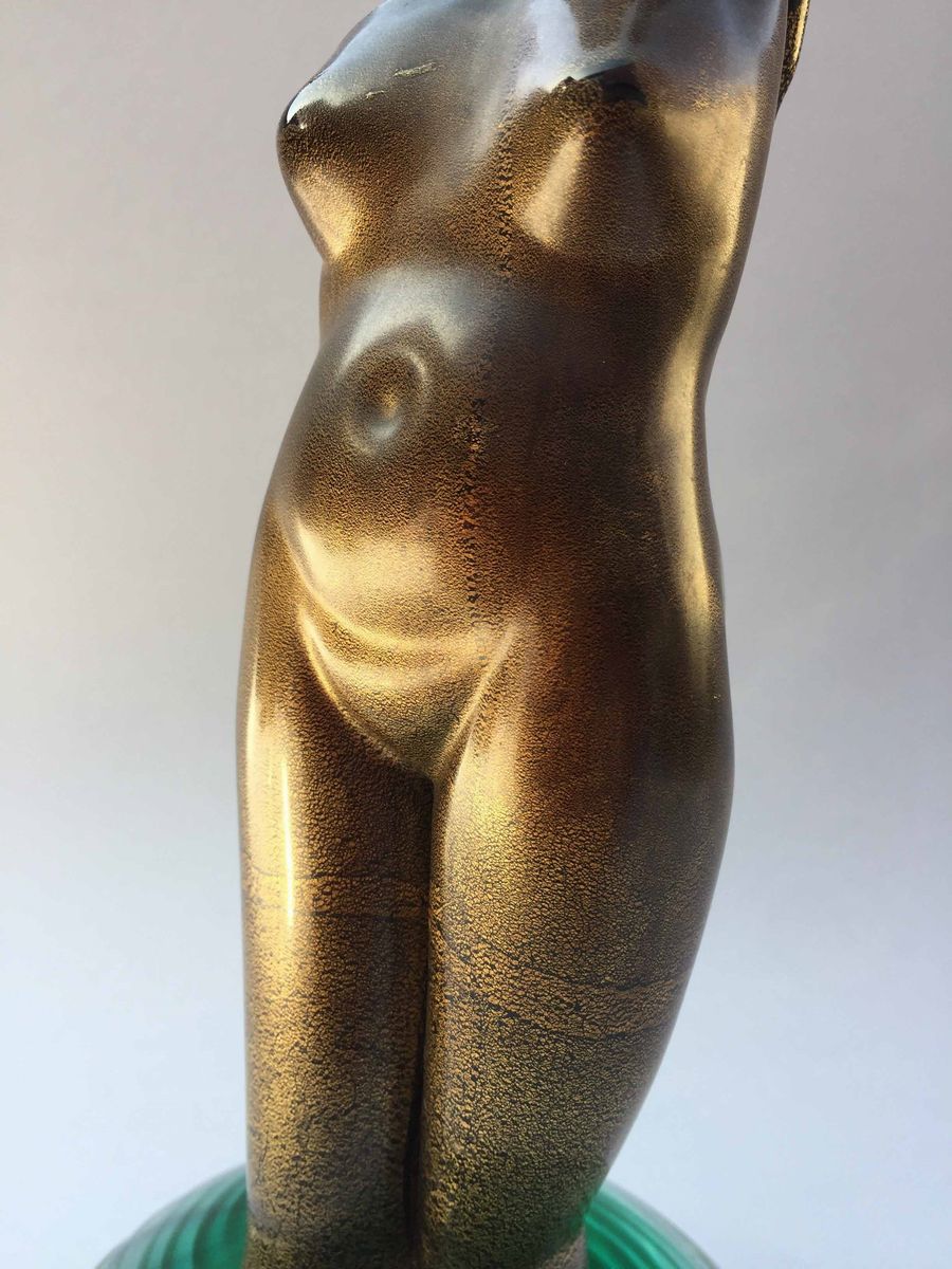 "Nudo di donna" corpo dorato, base in vetro verde Altezza cm 25, diametro base cm 11 Priva della braccia perdute da tempo
