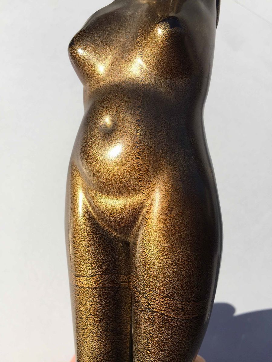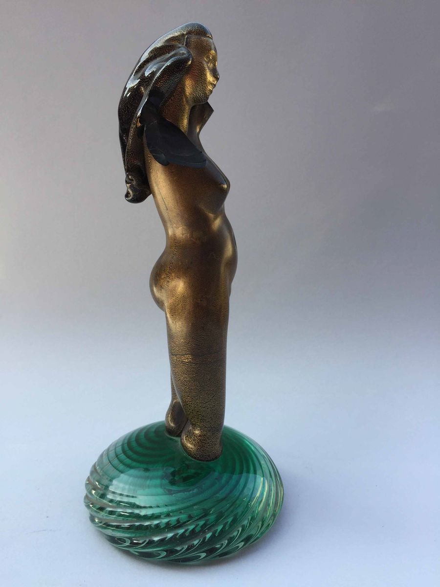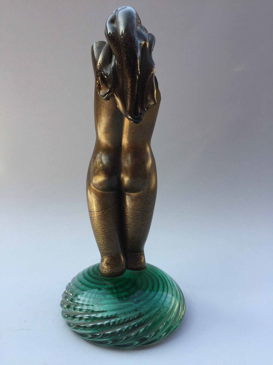"Nudo di donna" corpo dorato, base in vetro verde Altezza cm 25, diametro base cm 11 Priva della braccia perdute da tempo