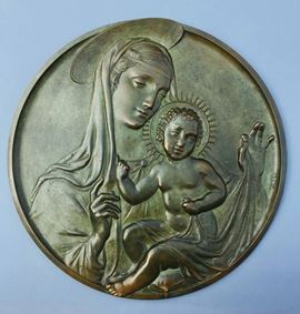 Bronzo in splendida patina verde. Anni 30. Firma (POSI') incussa a destra Diametro cm 39 Pietro Girardi è stato pittore, scultore e mosaicista